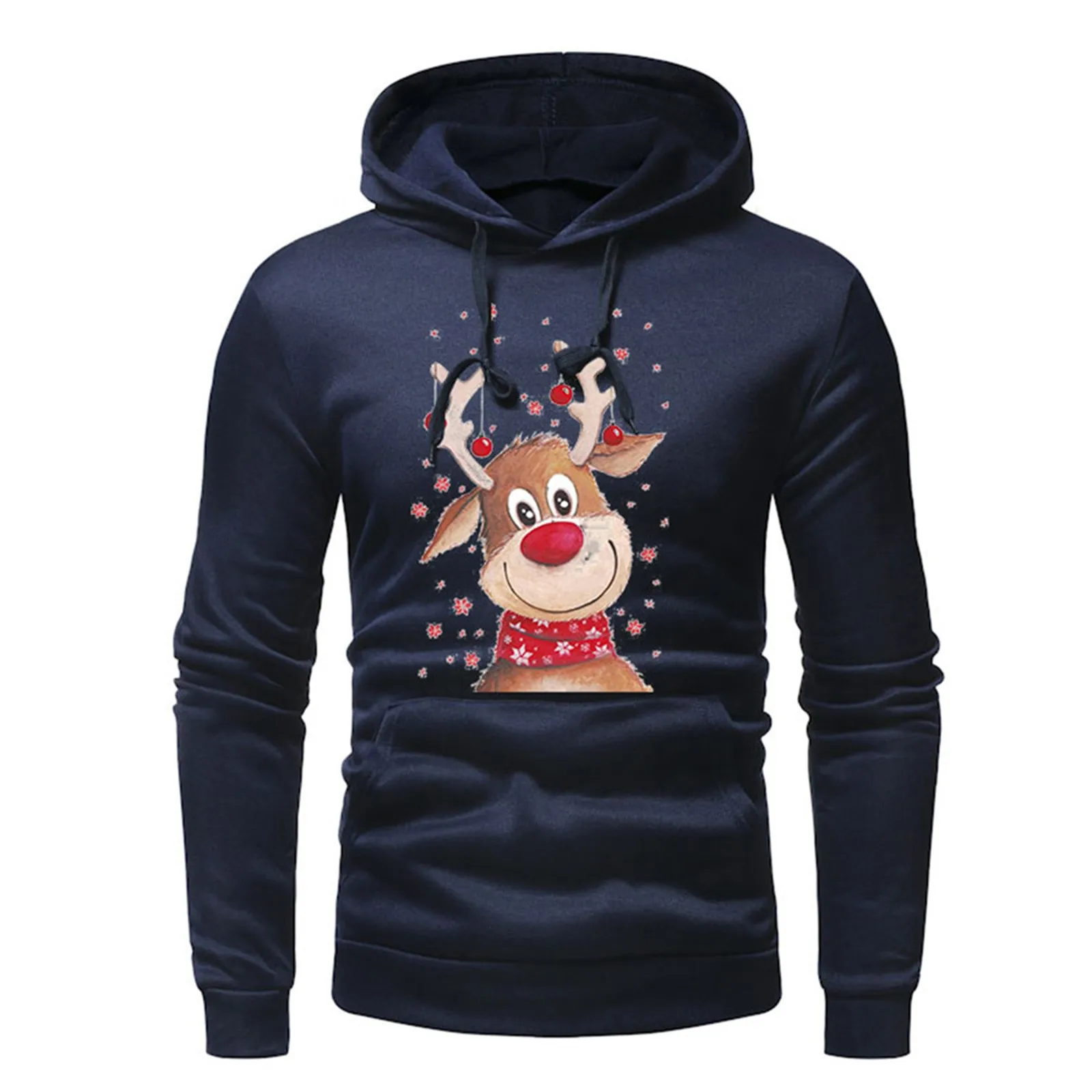 Elk Christmas Hoodies Loose Color-blocking Plush Hooded Autumn Winter Hoodies Top Tracksuits Sweatshirts sudaderas para