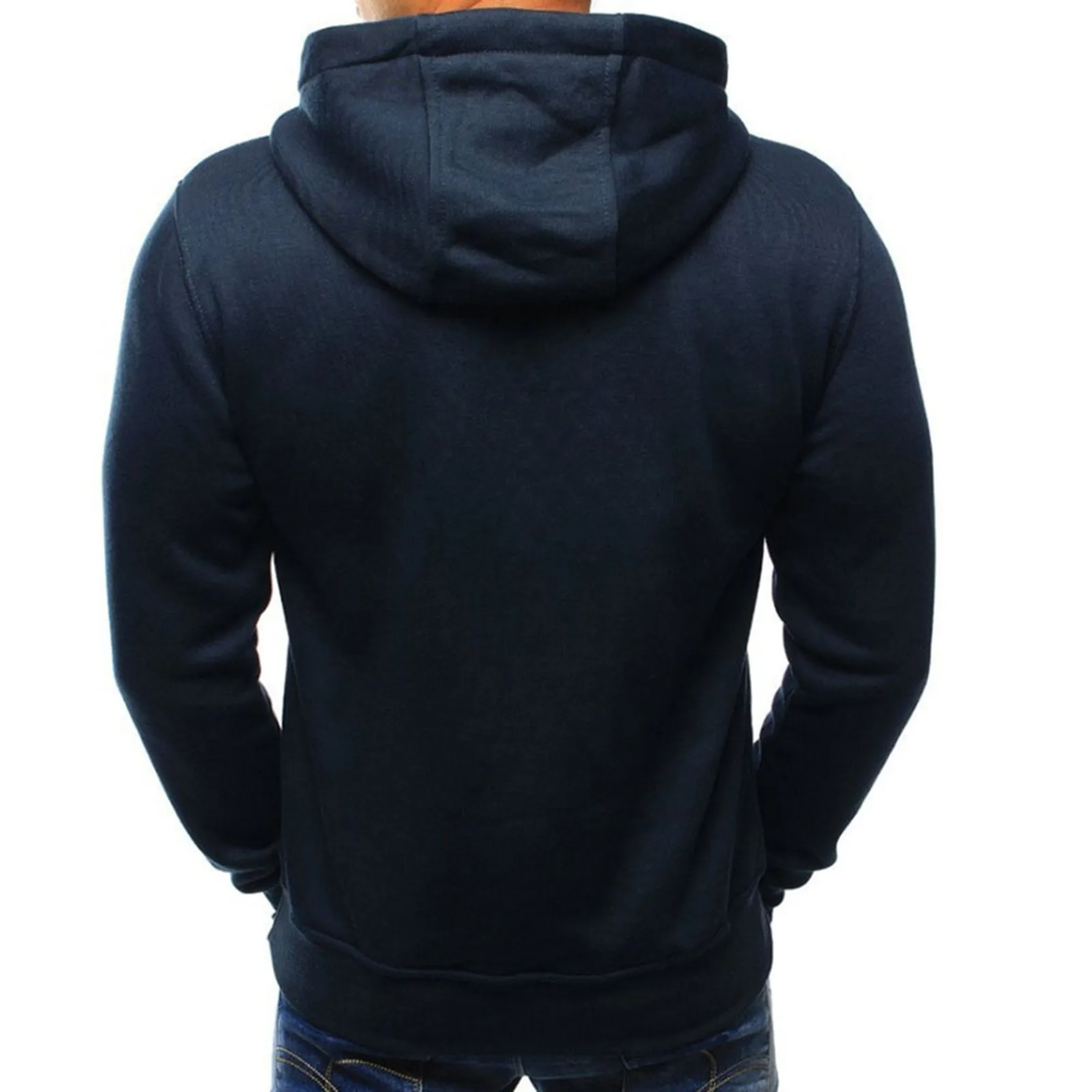 Men's Casual Loose Color-blocking Plush Hooded Sweater Top