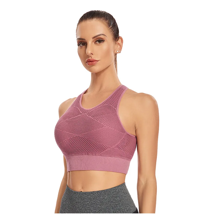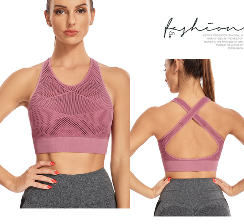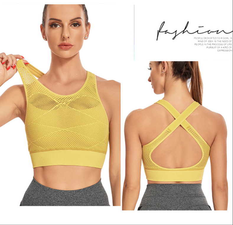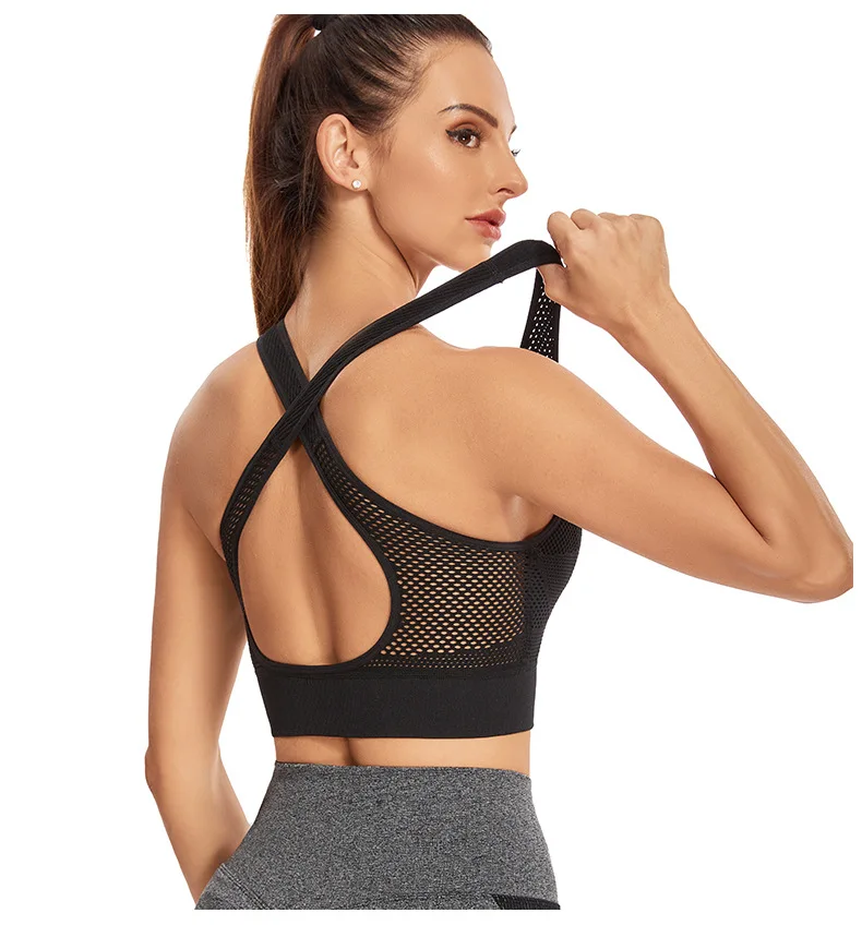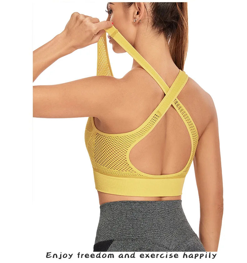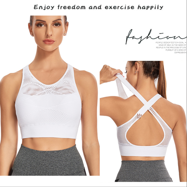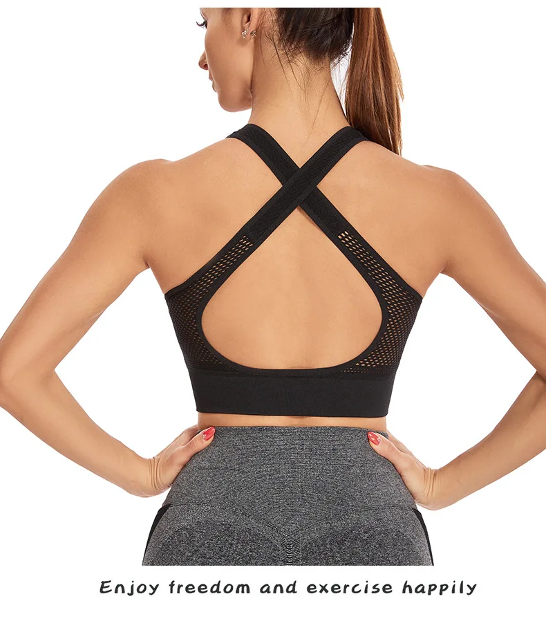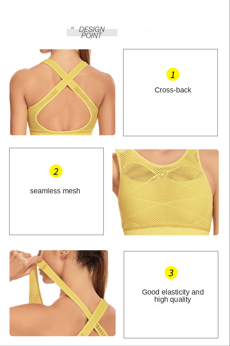 Mesh Bra Seamless Women Sports Underwear Cross Back Ladies Shockproof Running Fitness Tank Tops Breathable Gym Clothing