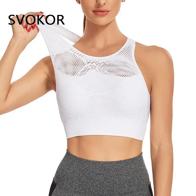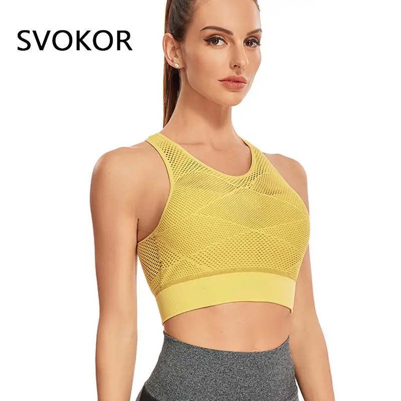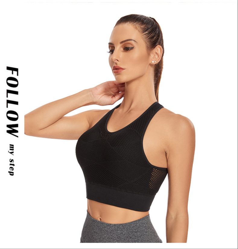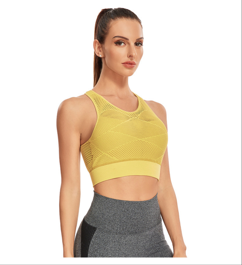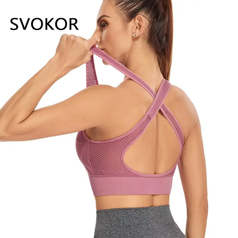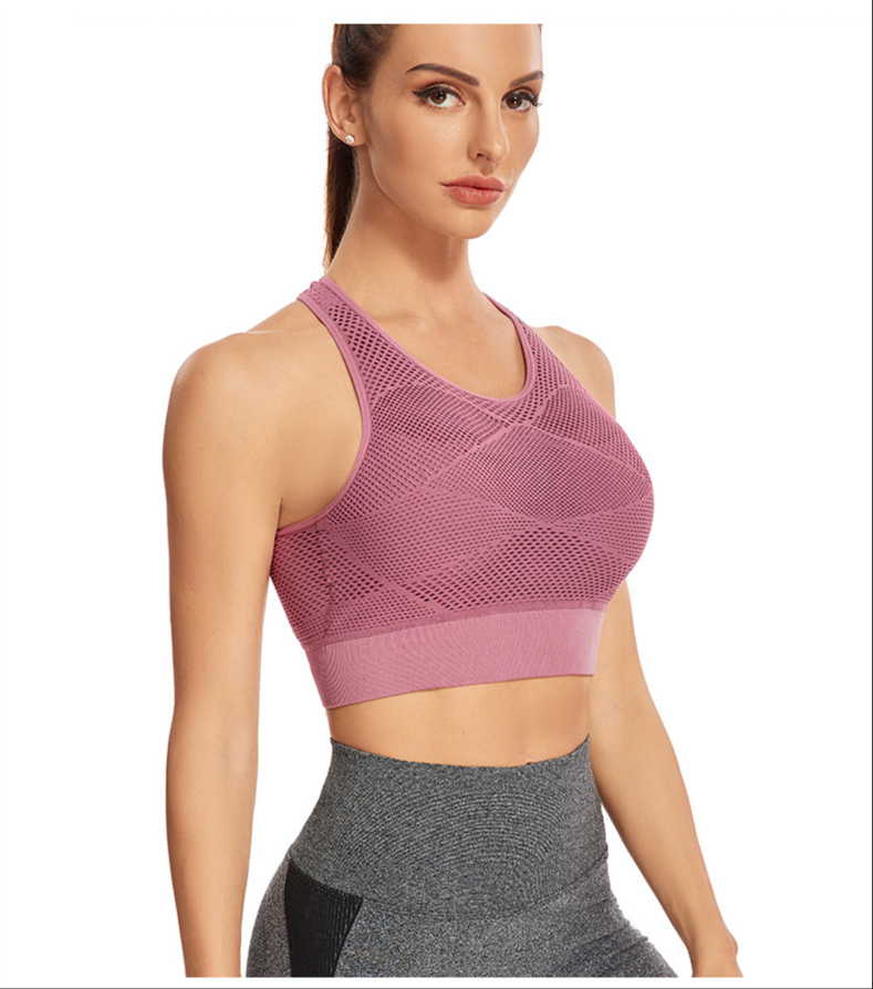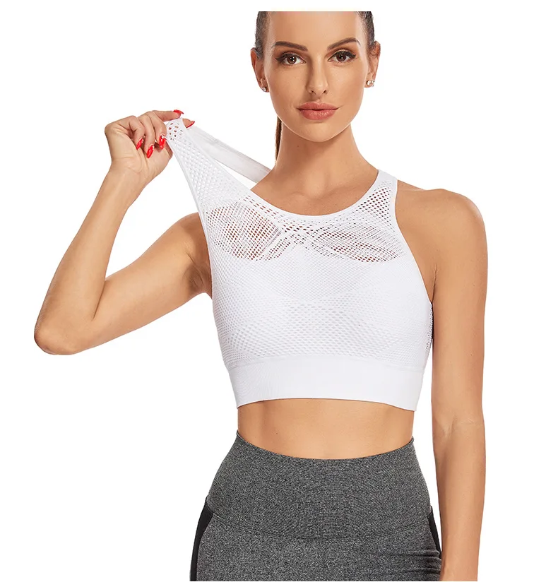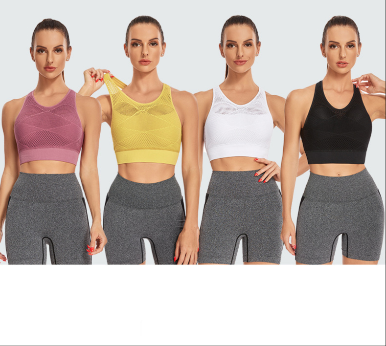 Mesh Bra Seamless Women Sports Underwear Cross Back Ladies Shockproof Running Fitness Tank Tops Breathable Gym Clothing