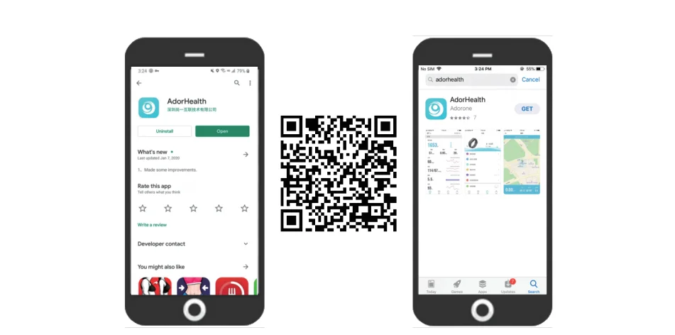 3.Open the "Adorhealth" app on your mobile device (keep the bracelet near your mobile device during pairing).