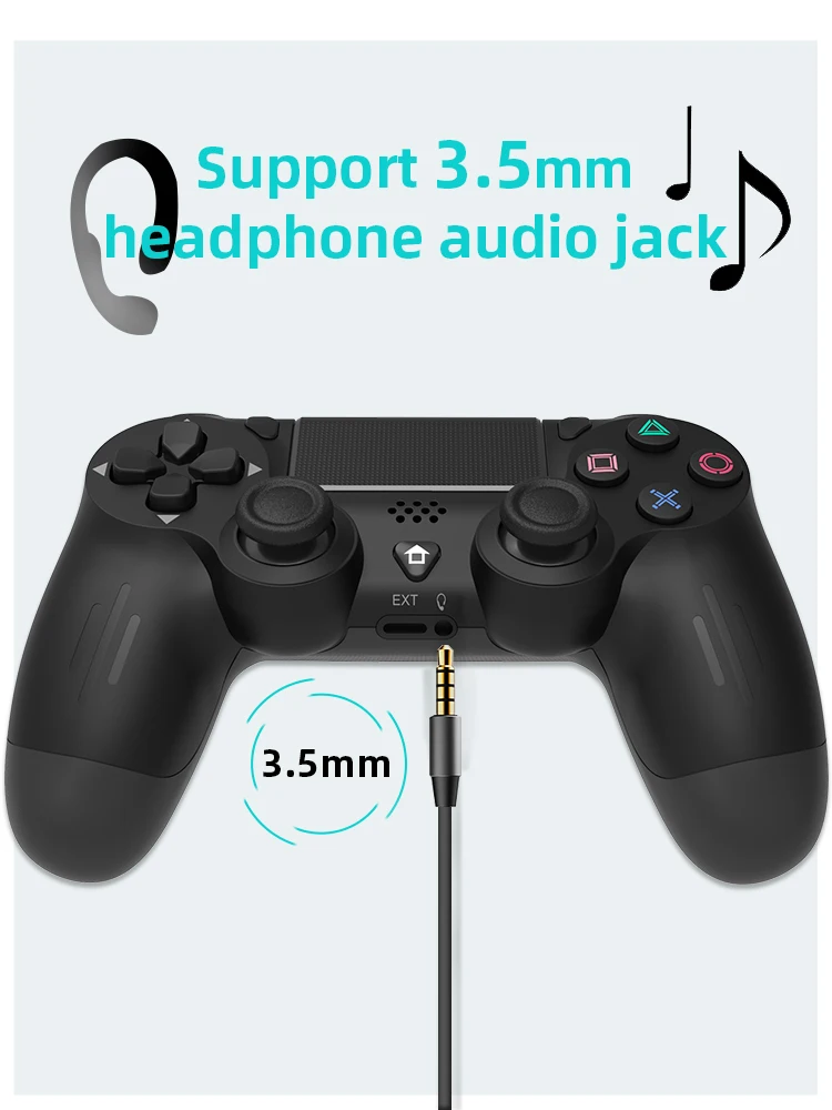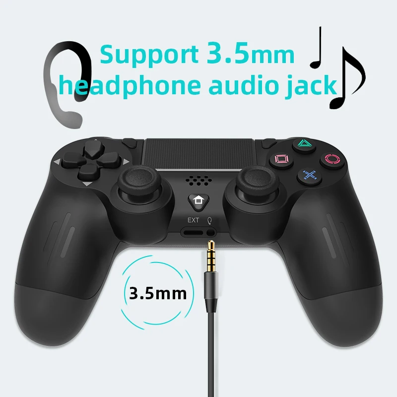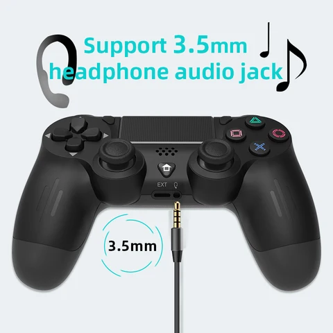 The controller with 3.5mm stereo audio jack that is perfectly compatible with gaming headsets. Powered via the included Micro-USB data cable, the controller can be plugged into the ps4 console for quick connection and charging.