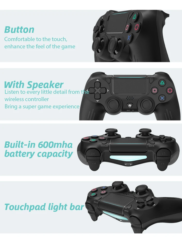 Applicable to multiple platforms, able to experience a cool experience of action and adventure. The optimized ergonomic design restores the texture of the official original controller as much as possible so that players can have a comfortable gaming experience in all games. It’s a good replacement or backup controller Compatible with PS4 controller.