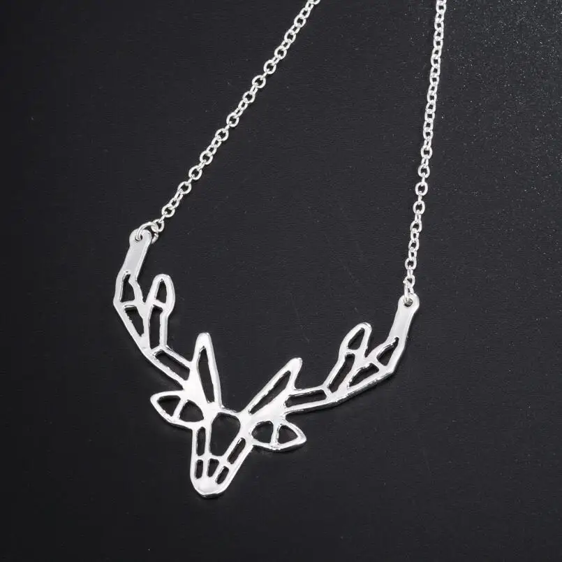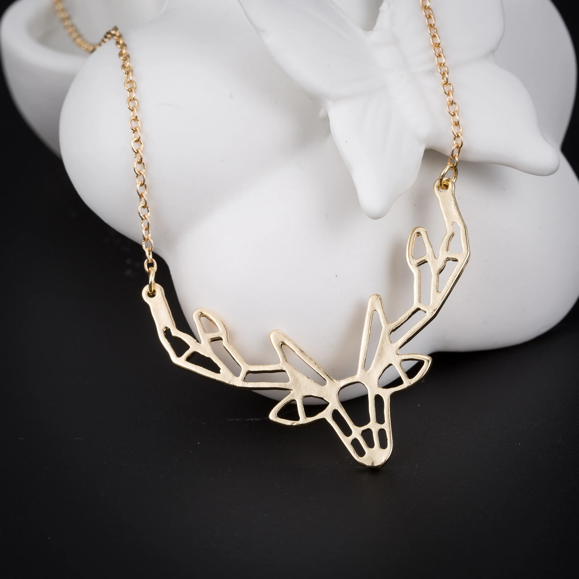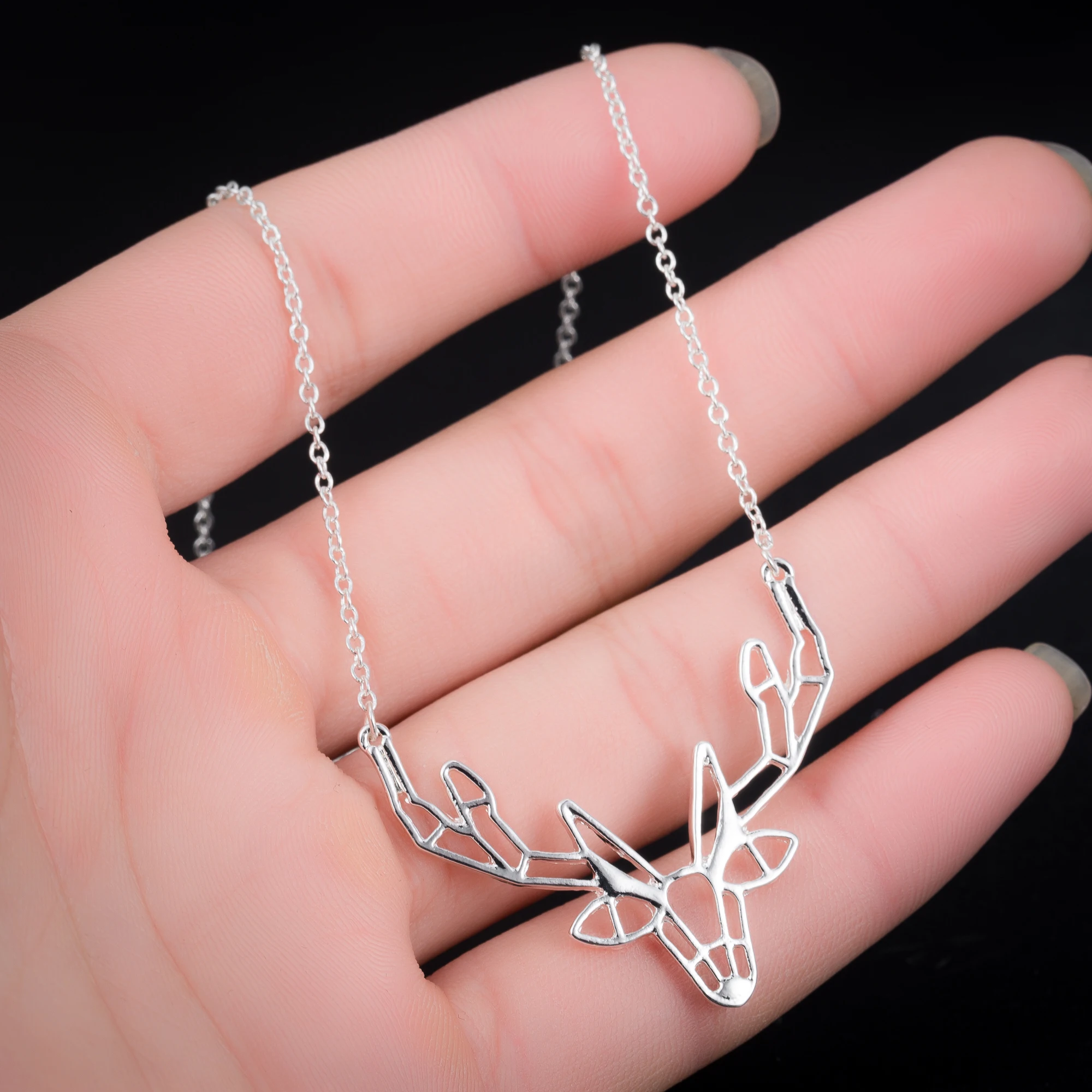 Trendy Origami Antler Pendant Necklace Retro Elk Deer Horn Necklace Choker Fashion Jewelry for Women Men Christmas Gift