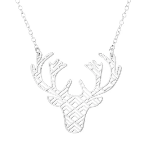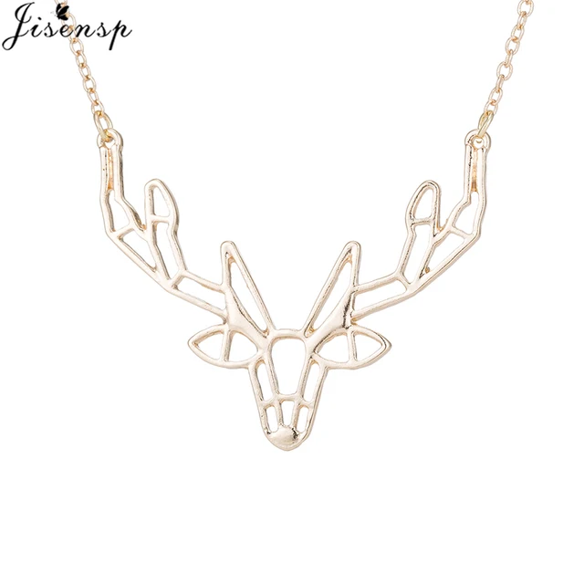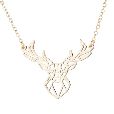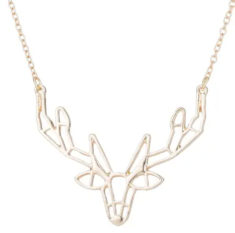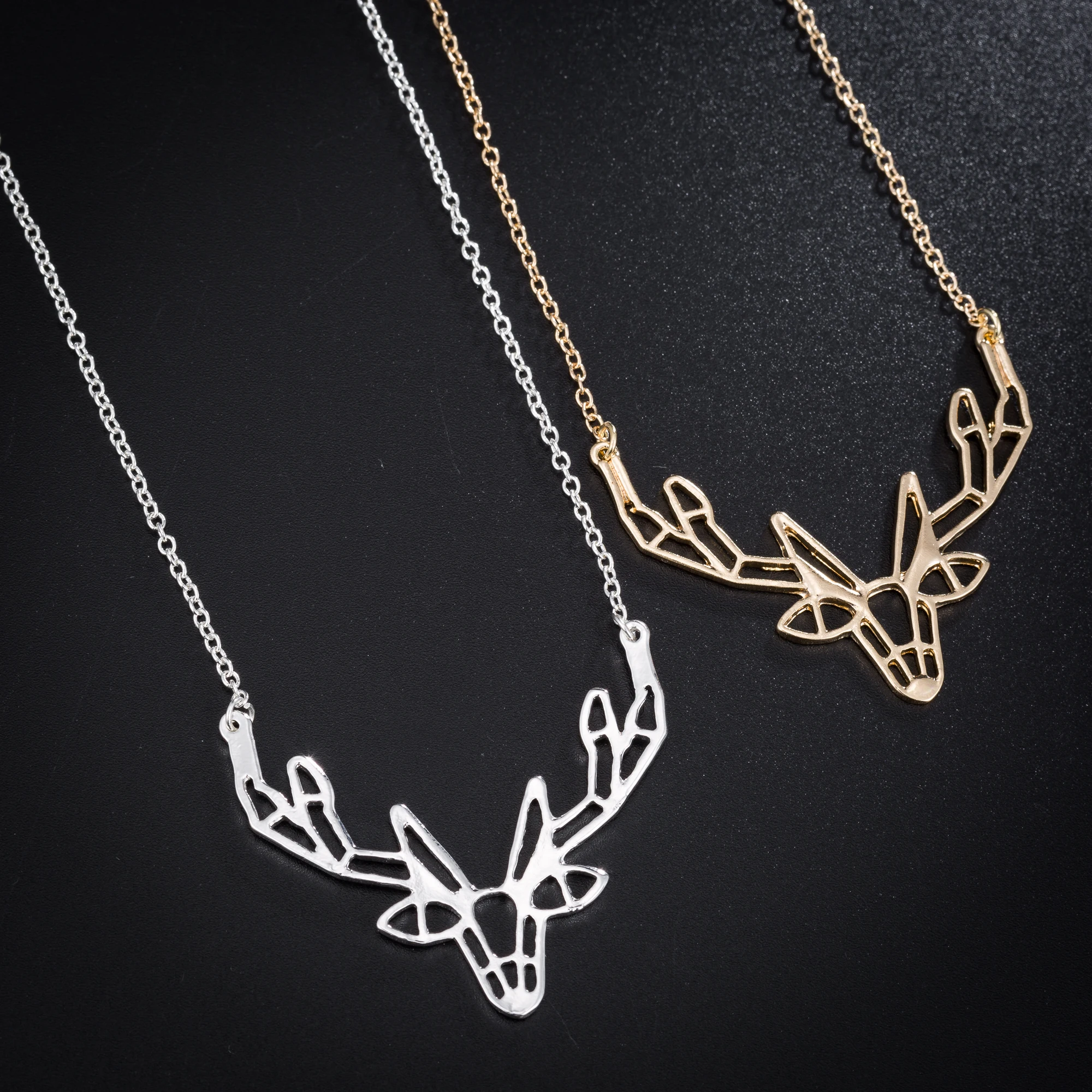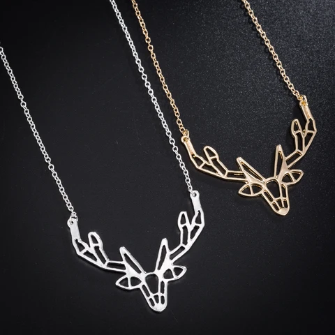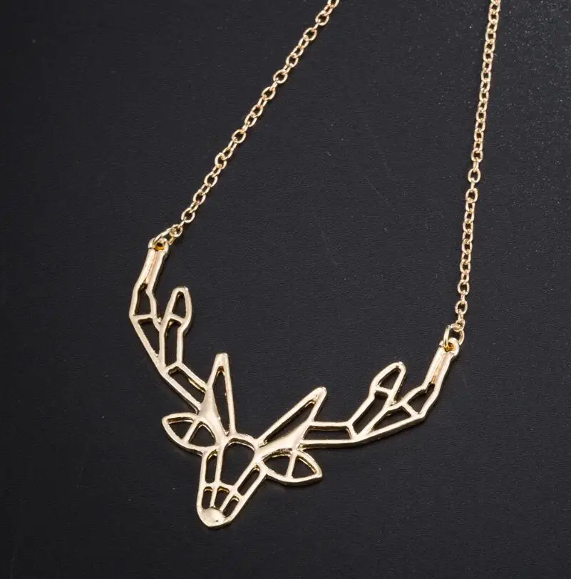 Trendy Origami Antler Pendant Necklace Retro Elk Deer Horn Necklace Choker Fashion Jewelry for Women Men Christmas Gift