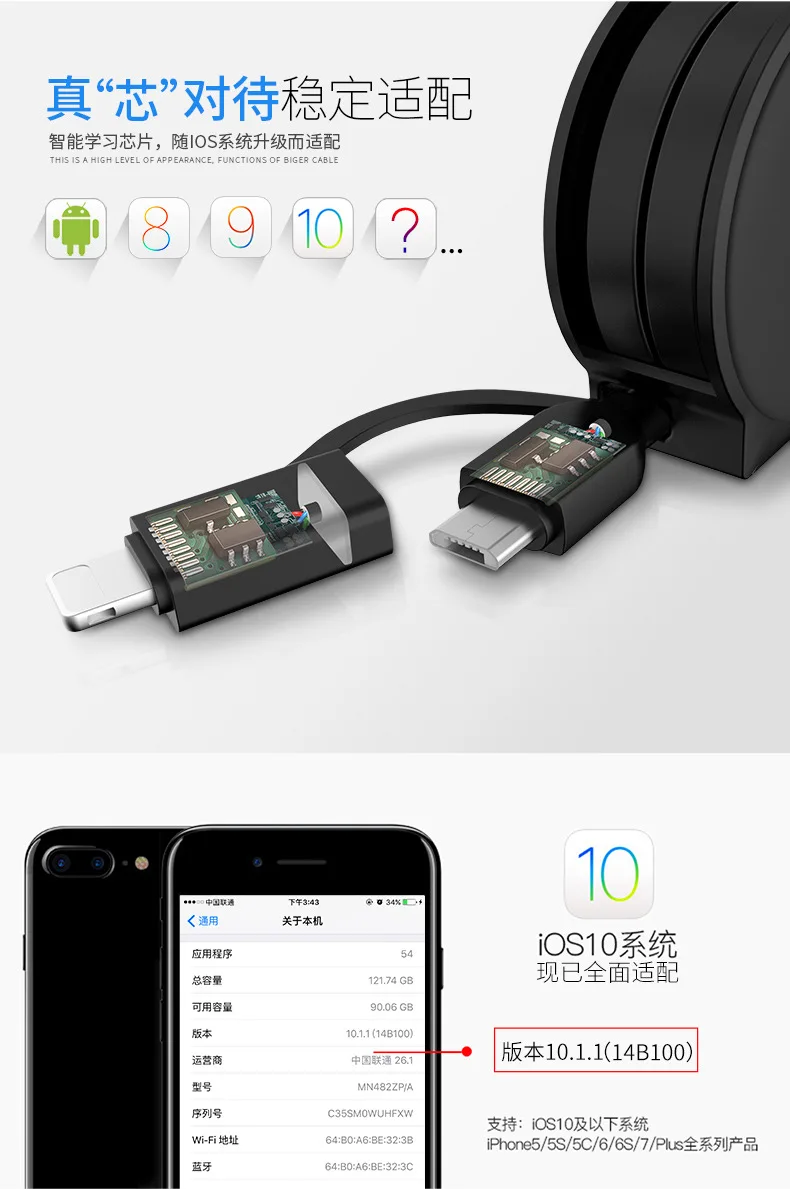 Ausuky Extendable USB Cable retractable data cable 1M combo for IOS &Android mobile phone-25