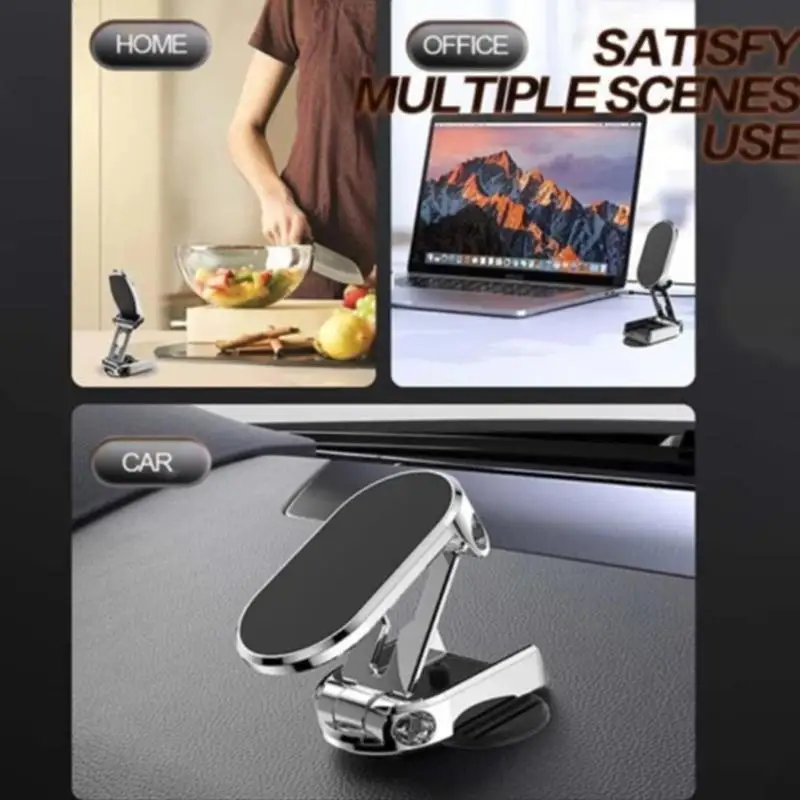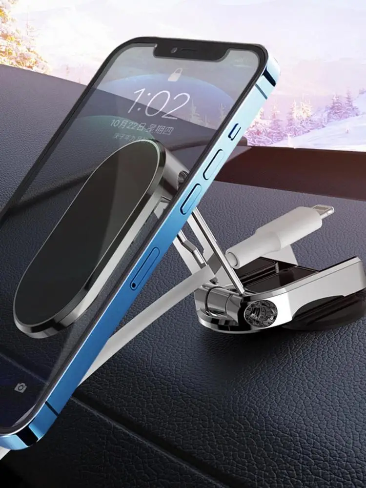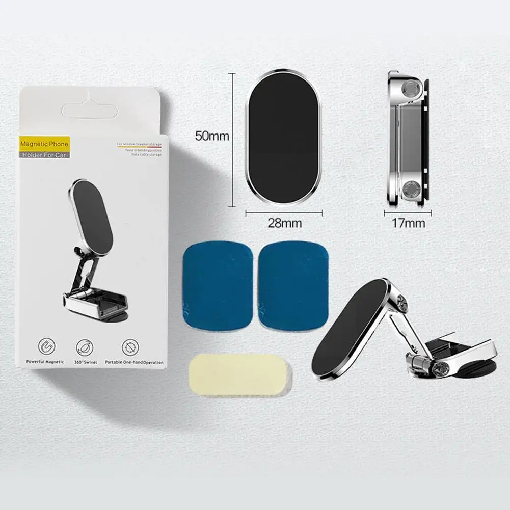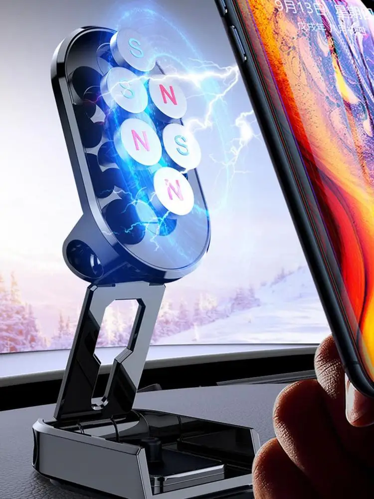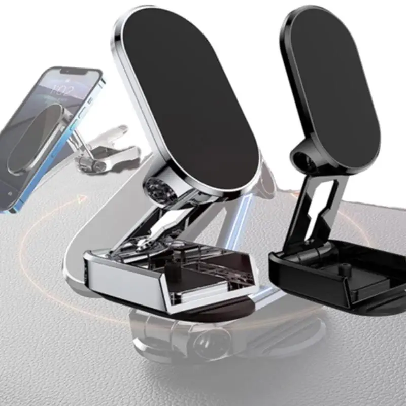 Small folding magnetic mobile phone car mount, the height and angle can be adjusted at will, and the viewing angle is comfortable.