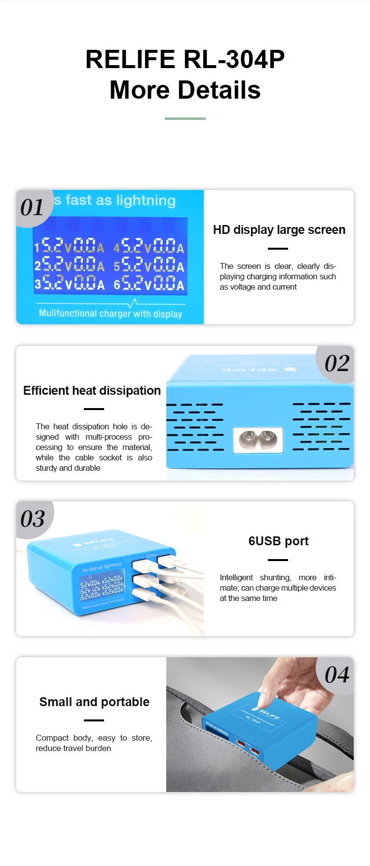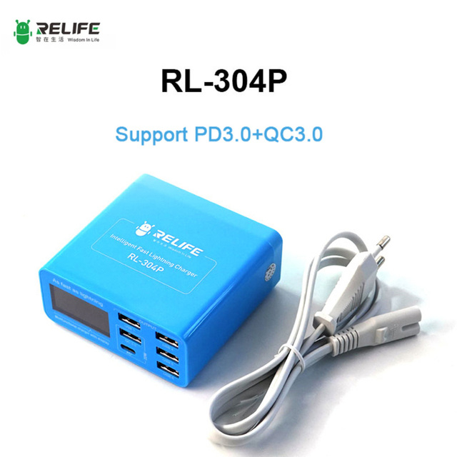 RELIFE RL - 304P PD3.0+QC3.0 Smart 6 USB Digital Display Lightning Charger Suitable for Charging All Mobile Phones and Tablets