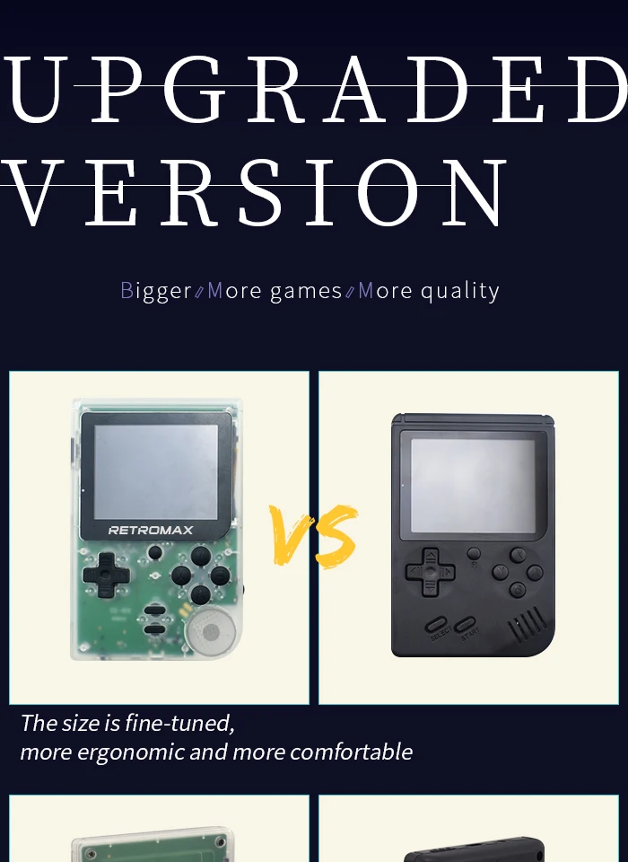 Open Linux source code system, with 32GB / 64GB card, built-in 3000 + / 10000 + games. Russian players can also choose more than 2000 matches of pure Russian games. It helps gamers search for games, helps gamers customize favorite games, and can play and download games by themselves. It allows you to be intimate with your family, friends and children and feel the charm of the game!