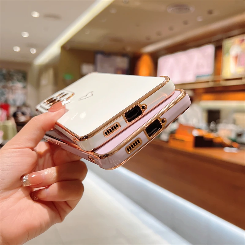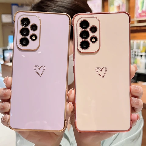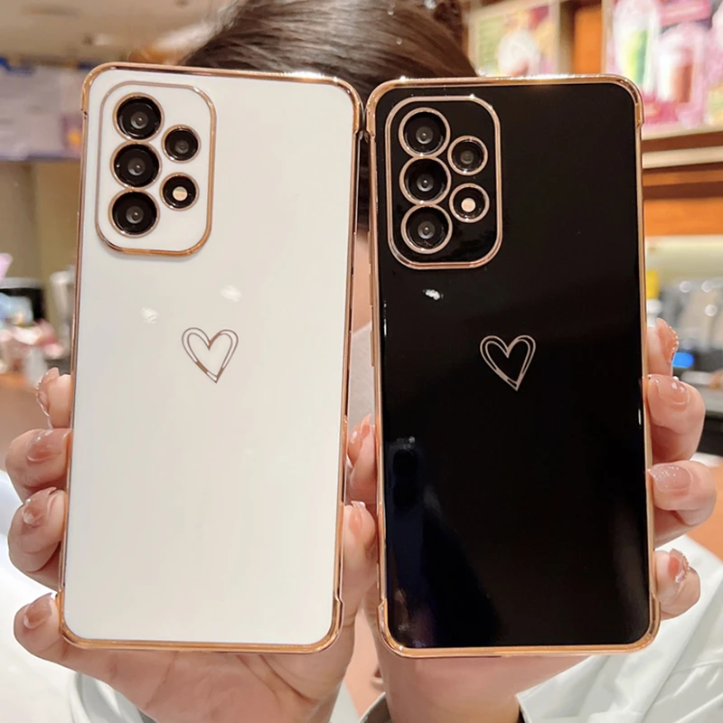 For Samsung Galaxy A53 A52 A13 A12 M12 F12 Case Plating Love Heart Soft Silicone Cover For Samsung S22 S21 S20FE Plus Ultra