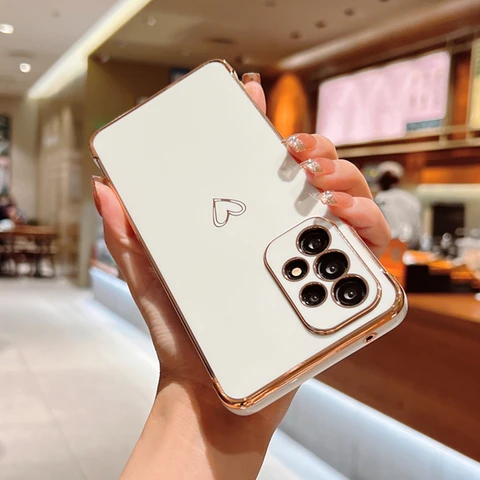 Case For Samsung Galaxy A53 A52 A13 A12 M12 F12 Case Plating Love Heart Soft Silicone Cover For Samsung S22 S21 S20FE Plus Ultra