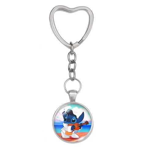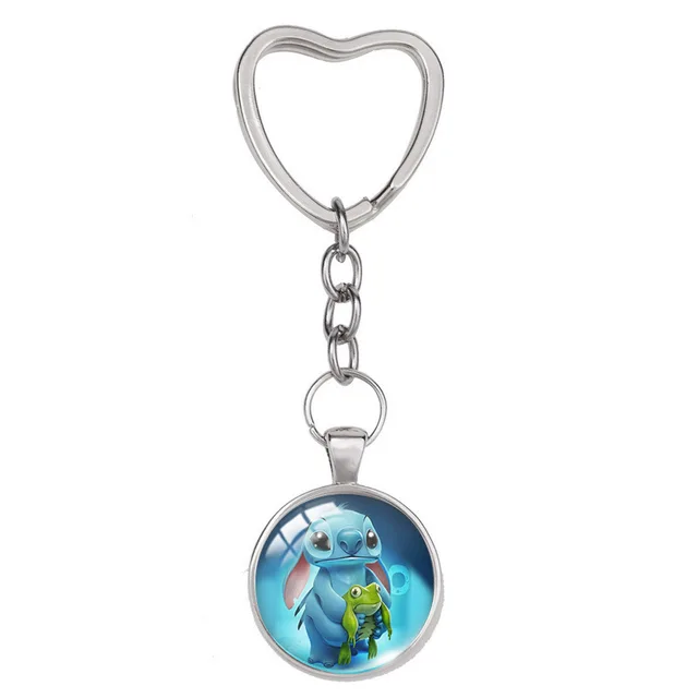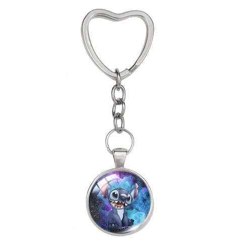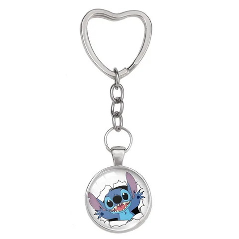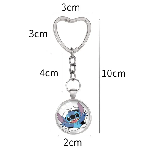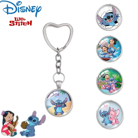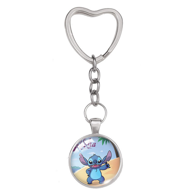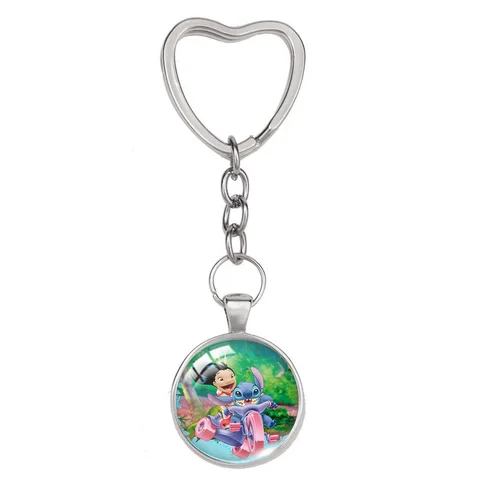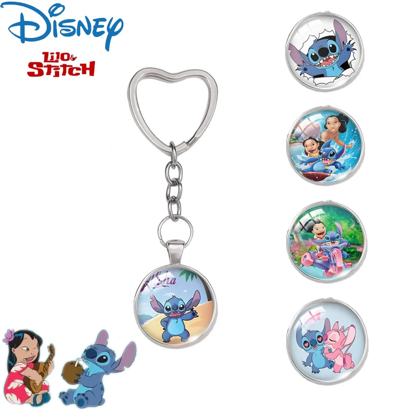 Lilo & Stitch Anime Figure Alloy Glass Heart-shaped Key Ring Key Chain Bag Accessories Children's Toys Birthday Gifts