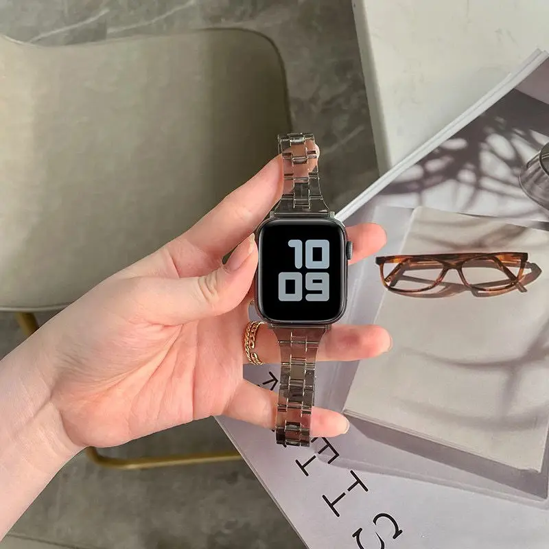 Transparent Band For Apple Watch 44mm 40mm 45mm Series Se 7 6 5 Clear Strap on Smart Iwatch 34 38mm 42mm Bracelet Watchband