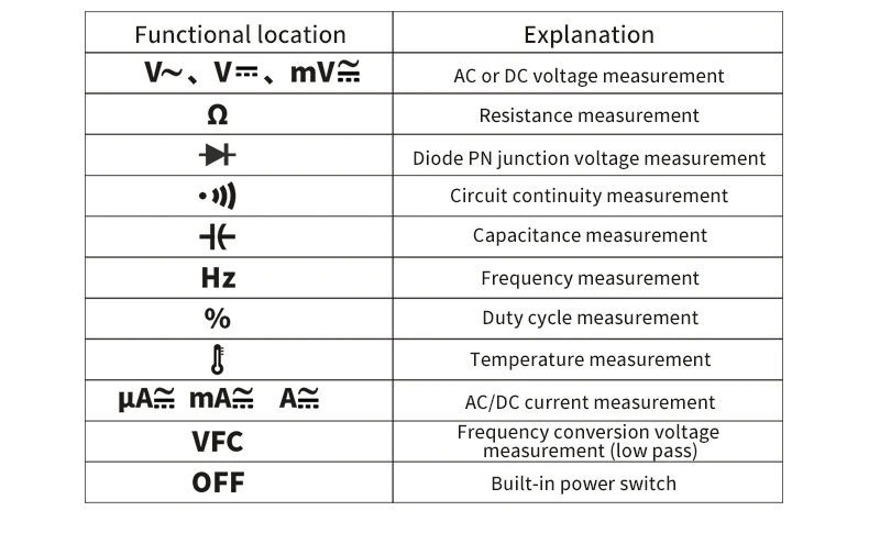 12. Current gear protection: equipped with fused fuse 440mA / 11A 1000V fuse