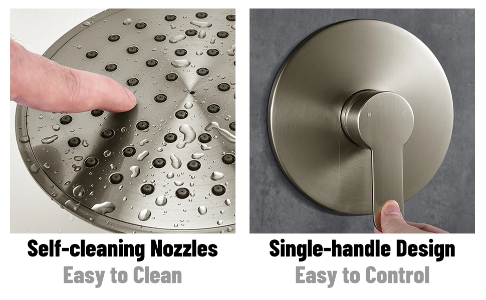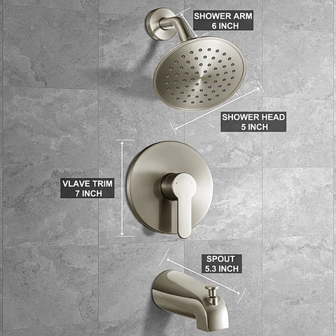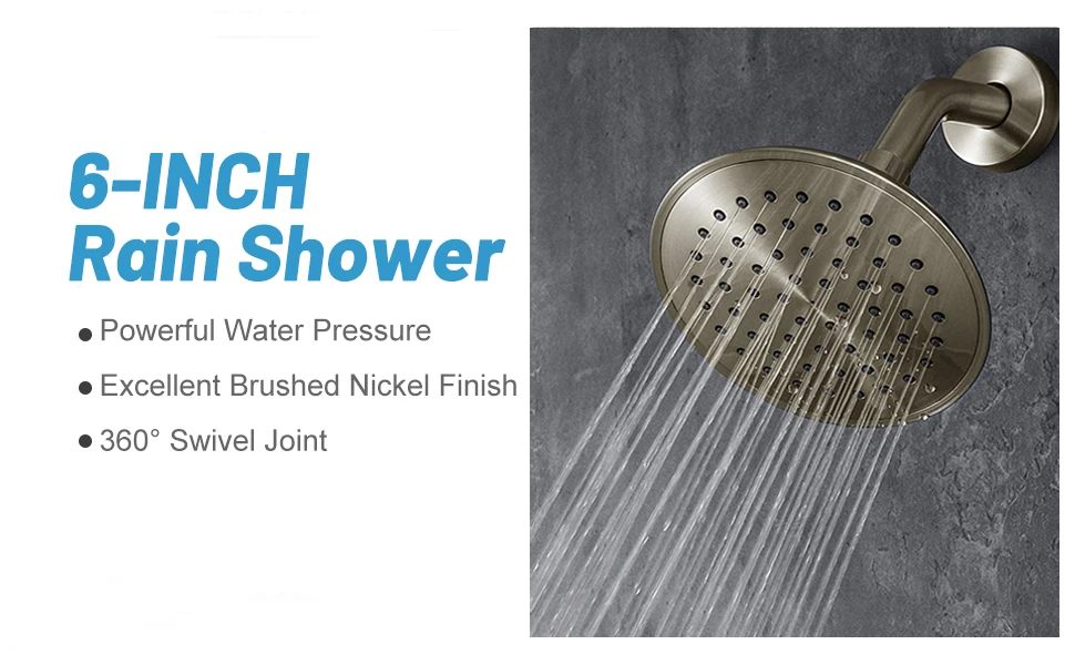 [Shower faucet set] shower system includes a 6-inch rain shower head with bathtub sprinkler and CUPC certified pressure balance valve. The high-pressure sprinkler can help you enjoy a wonderful shower and make your shower more comfortable and interesting.