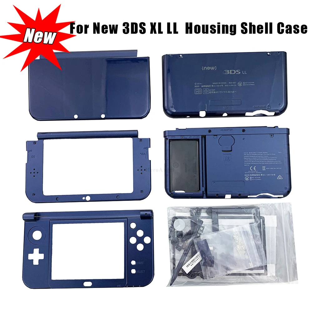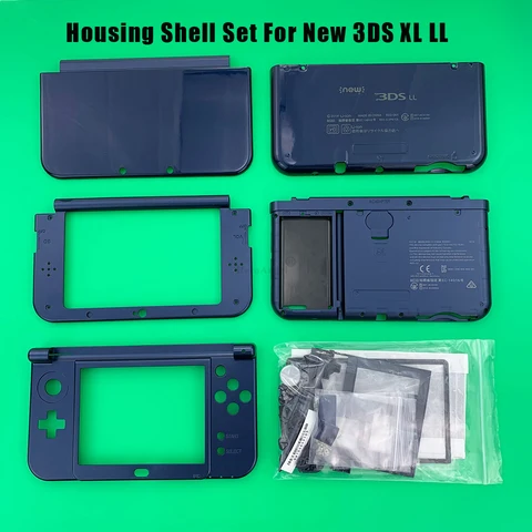 For Nintendo New 3DS XL LL Console Faceplate Blue Bottom Middle Shell Housing Full Set With Buttons Screw Replacement Case Cover