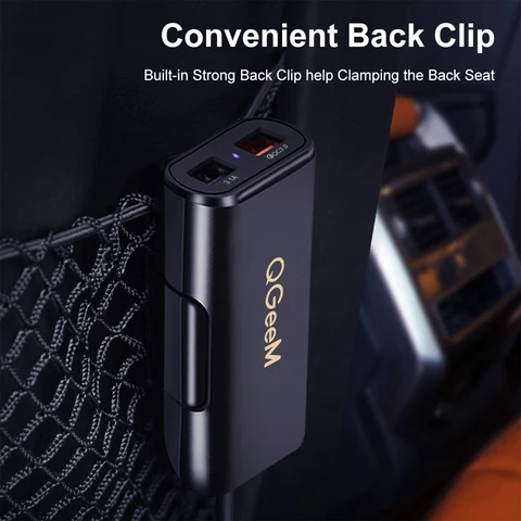 2. Front & Back Car Charger: Built-in Back Clip help Clamping the Back Seat Tightly