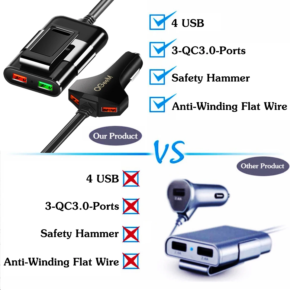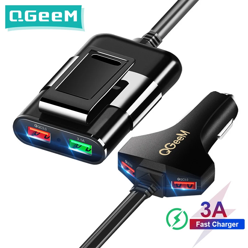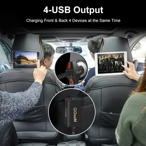 QGEEM QC3.0 4 USB Car Charger for iPhone Quick Charge 3.0 Car Portable Charger Hammer Front Back Phone Charging Fast Car Charger