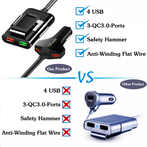1. 4 USB Car Charger: 4 Ports USB 12A Current to Charge your 4 Devices Faster