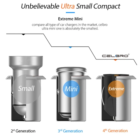 Compare all dual usb car chargers in the market, celbro extremely mini one is absolutely the smallest.