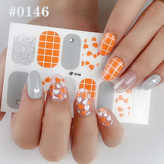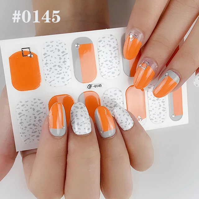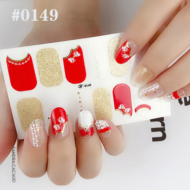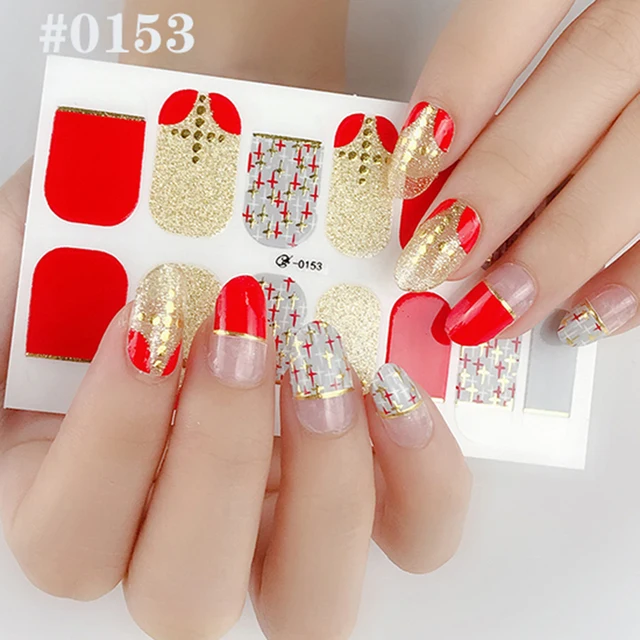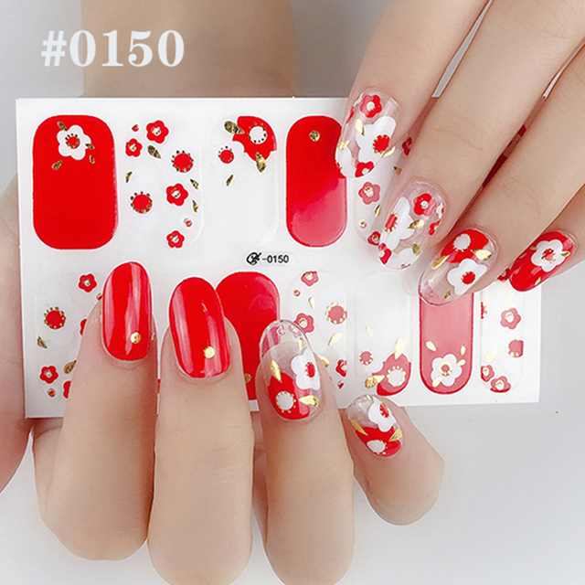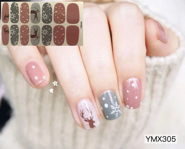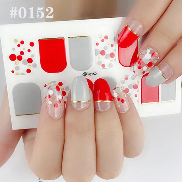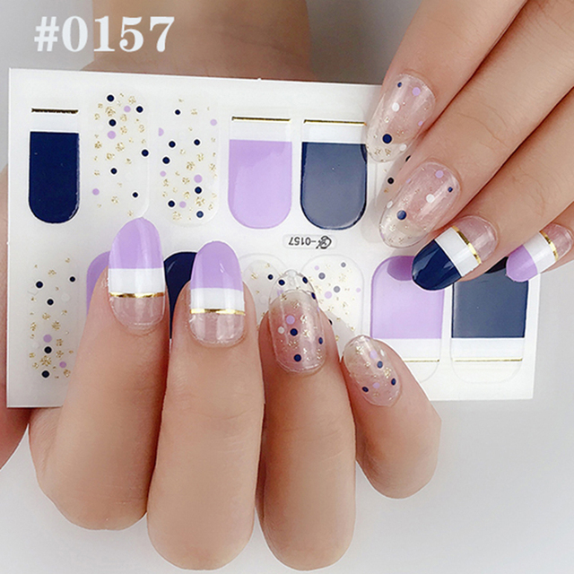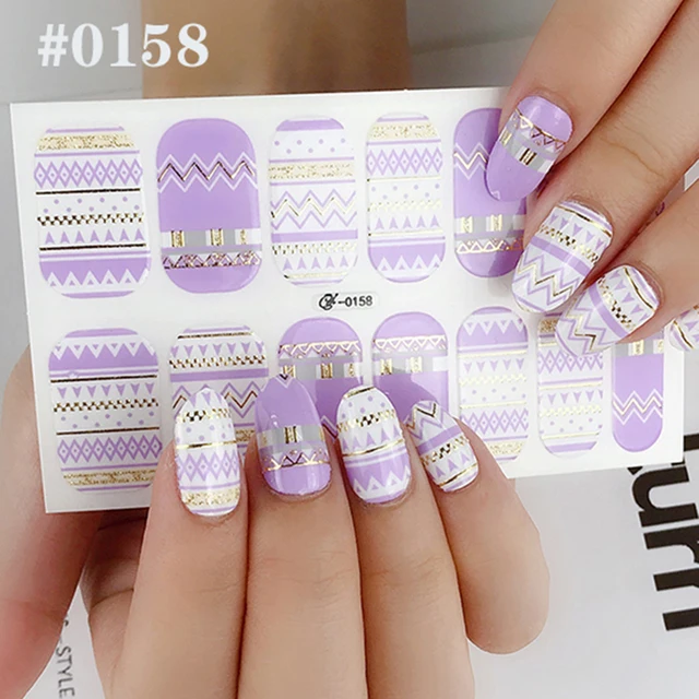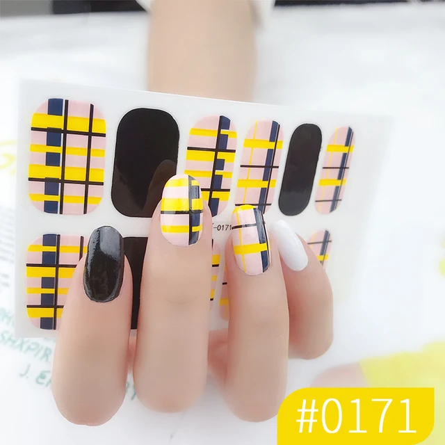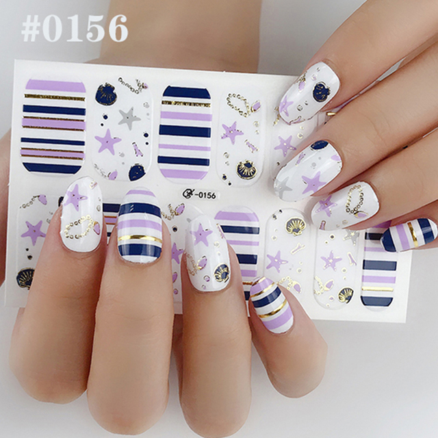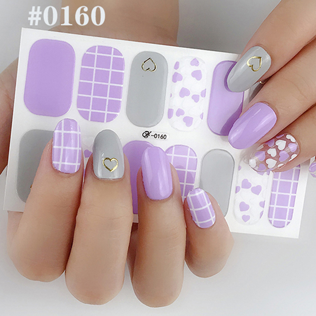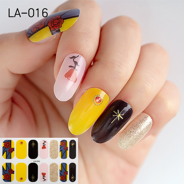 Lamemoria 14 Tips/Sheet Nail Polish Strips DIY Waterproof Nail Wraps Cute Cartoon Pattern Nail Stickers Nail Patch for Women