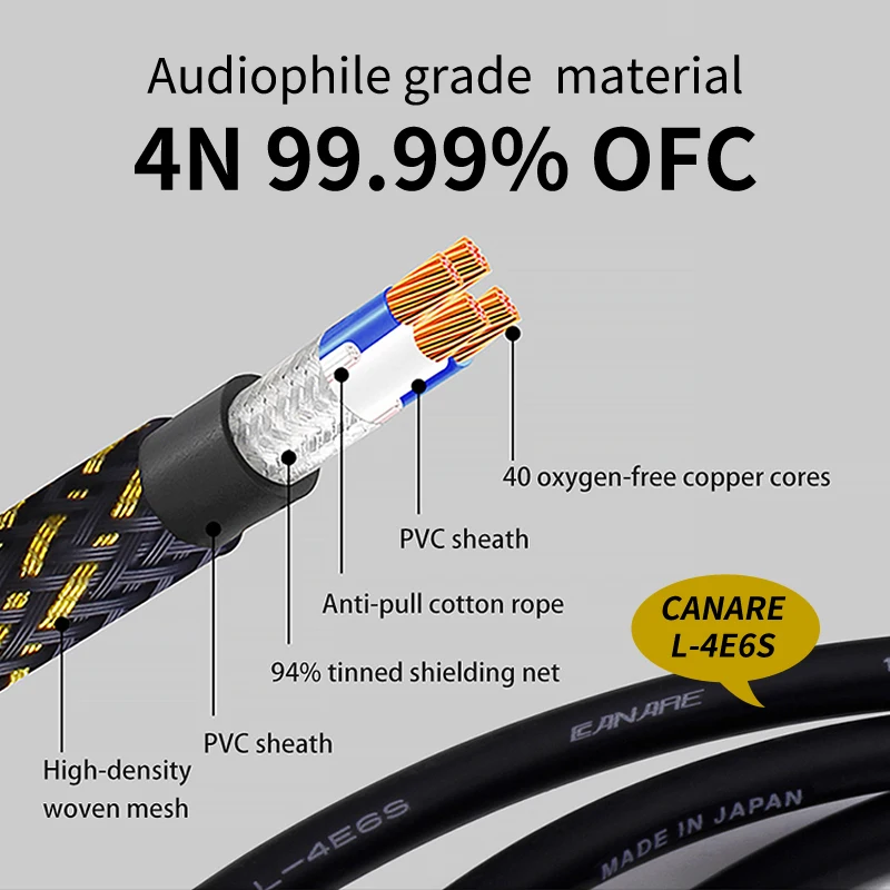 1. Cable: L-4E6S cable from Japan CANARE is adopted. The cable has more than 94% high density tinned braided shielding network, which can effectively shield external interference signals. The cable core is composed of 4 cables with 40 pieces of 0.08mm anaerobic copper wire per share.