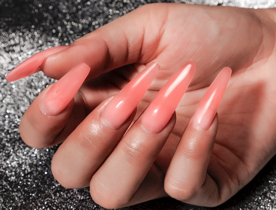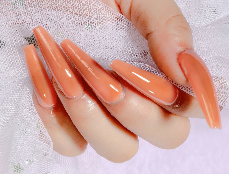 4.Apply adequate amount of theglitterPoly Nail Gelon the nail plate model.