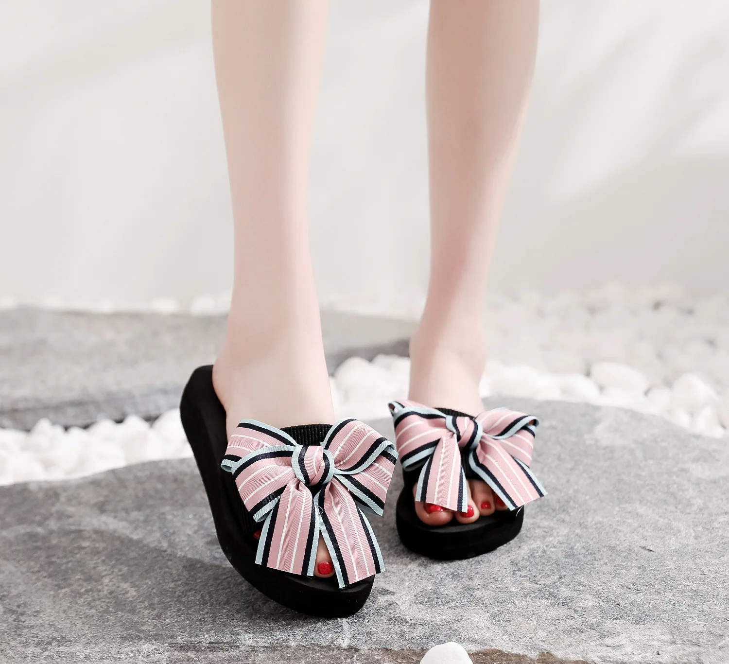 • spot network red female summer a word is cool bowknot bigger sizes with beach sandals shoes for women's shoes