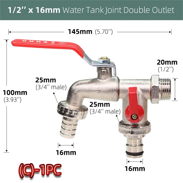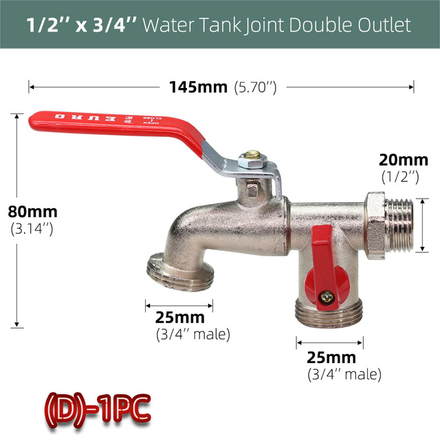 Tap Joint 1/2'' IBC Water Tank Connector 2-Way 1-Way Garden Hose Irrigation Faucet Adapter Replacement Fitting Ball Valve