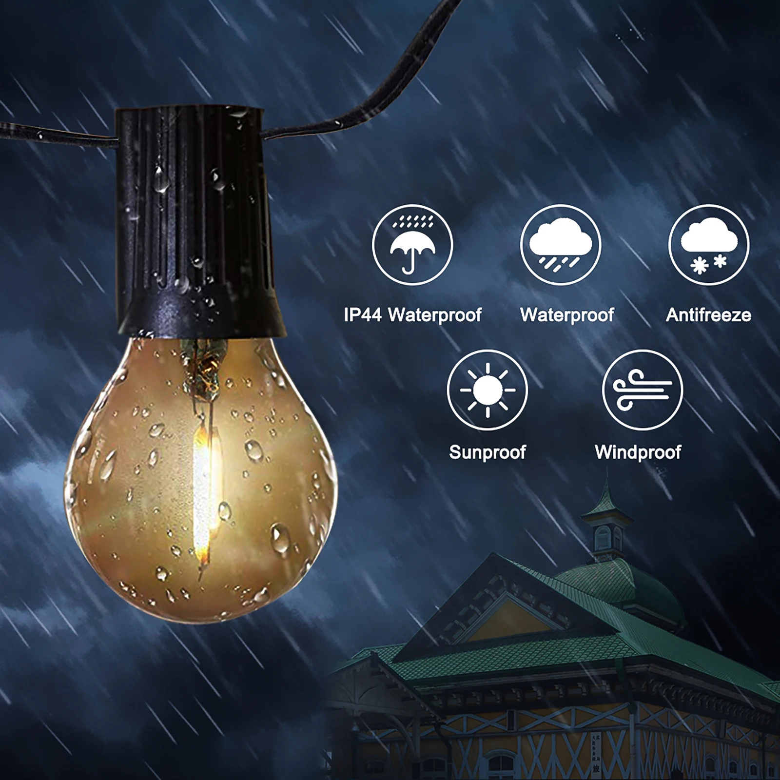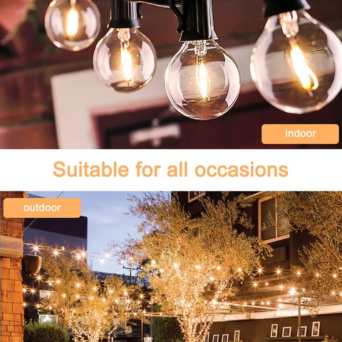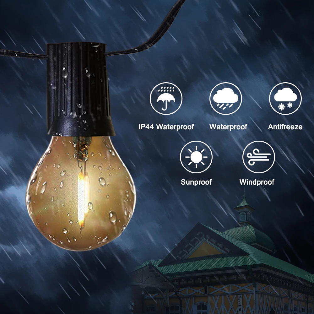 This outdoor string lights is water-proof IP44 and durable, and are built with weatherproof-tech so that they can work under extreme temperatures, rain, wind, and damp climates. It can be hung out all year round.