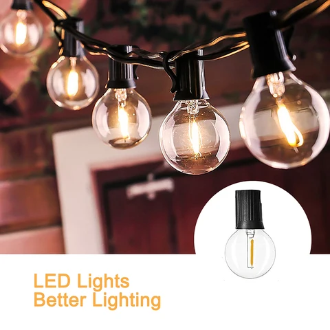 This led G40 bulbs are made of glass and much brightness than traditional glass bulb type. Low power consumption and safe for touch. Individual bulbs are removable without the entire strand going out, making it well for some hard to reach places.