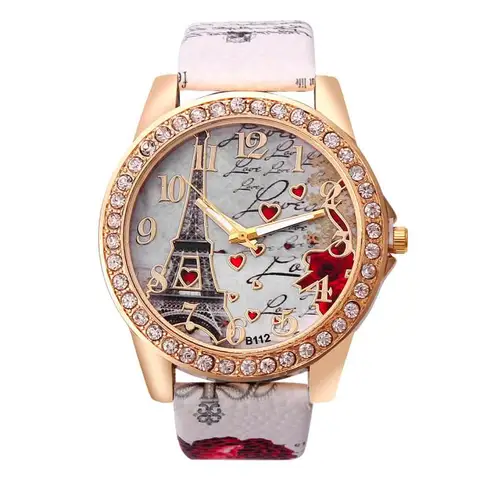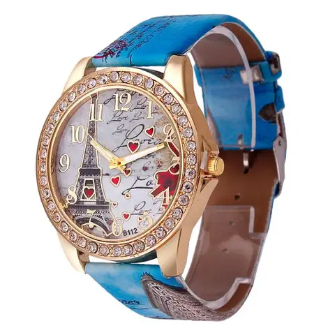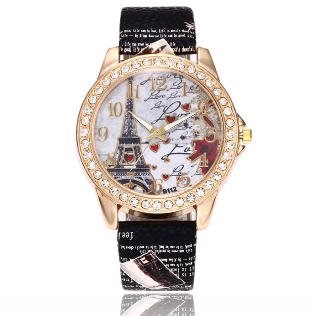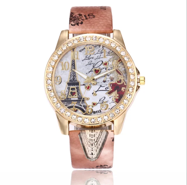 Tower Pattern Leather Band Analog Quartz Wrist Watches