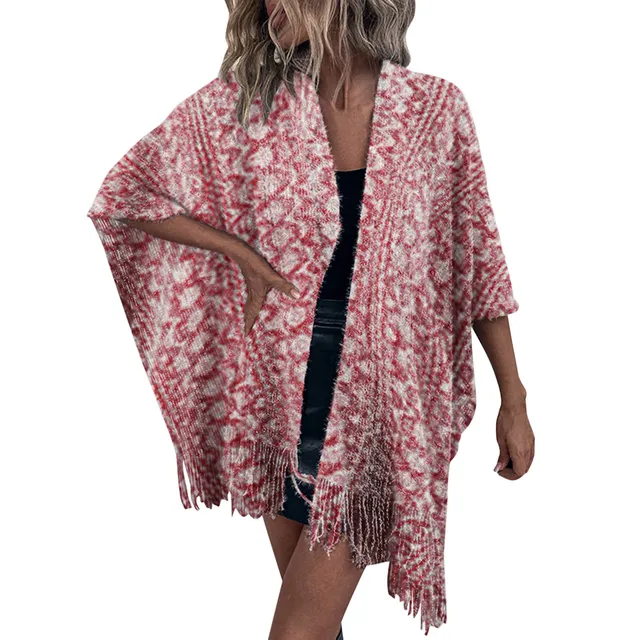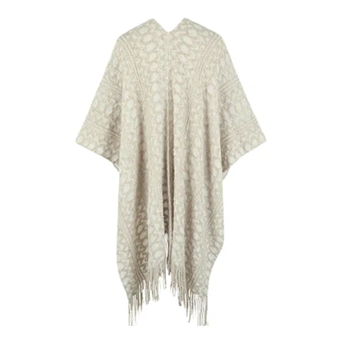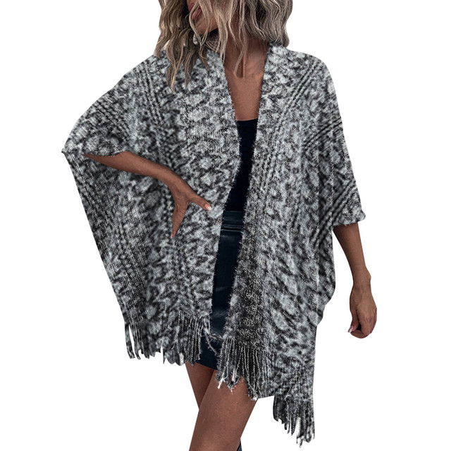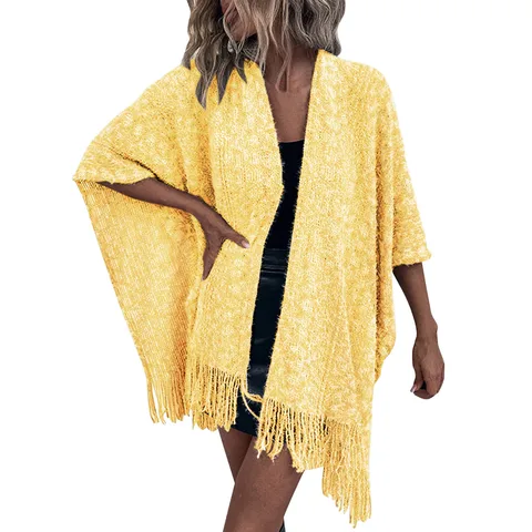 Ladies Crochet Open Knit Fringe Cape Shawl Sweater Cardigan