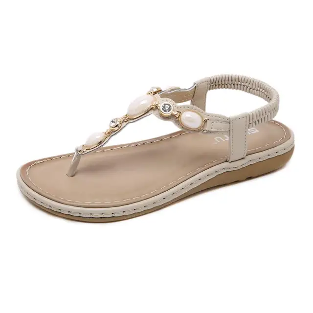 Elegant jewlry decoration shoes women sandals fashion high quality PU elastic strap summer sandals woman shoes plus size