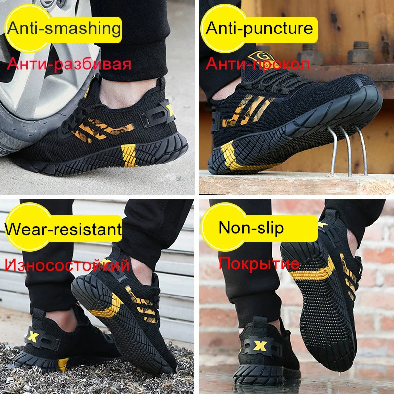 Breathable Men\\\\\\\'s Work Safety Shoes Boots Steel Toe Cap Casual Men\\\\\\\'s Boots Work Indestructible Shoes Anti-Smashing Work Sneakers
