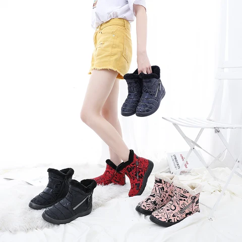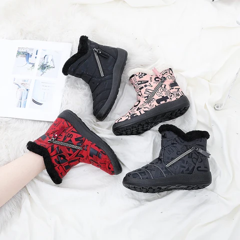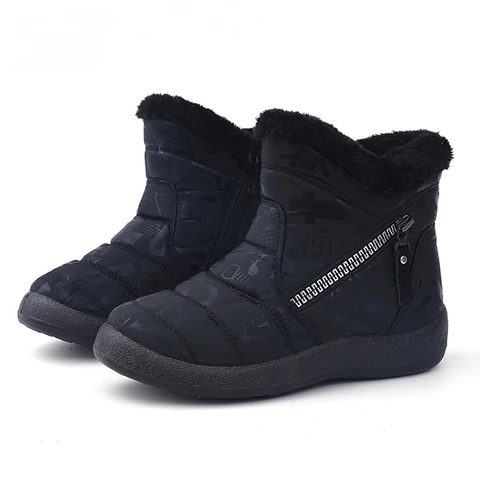 Boots Plush Warm Ankle Boots For Women Family Winter Boots Waterproof Women Boots Female Winter Shoes Zip Booties 28-43