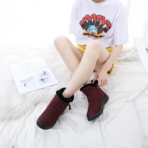 • Boots Plush Warm Ankle Boots For Women Family Winter Boots Waterproof Women Boots Female Winter Shoes Zip Booties 28-43