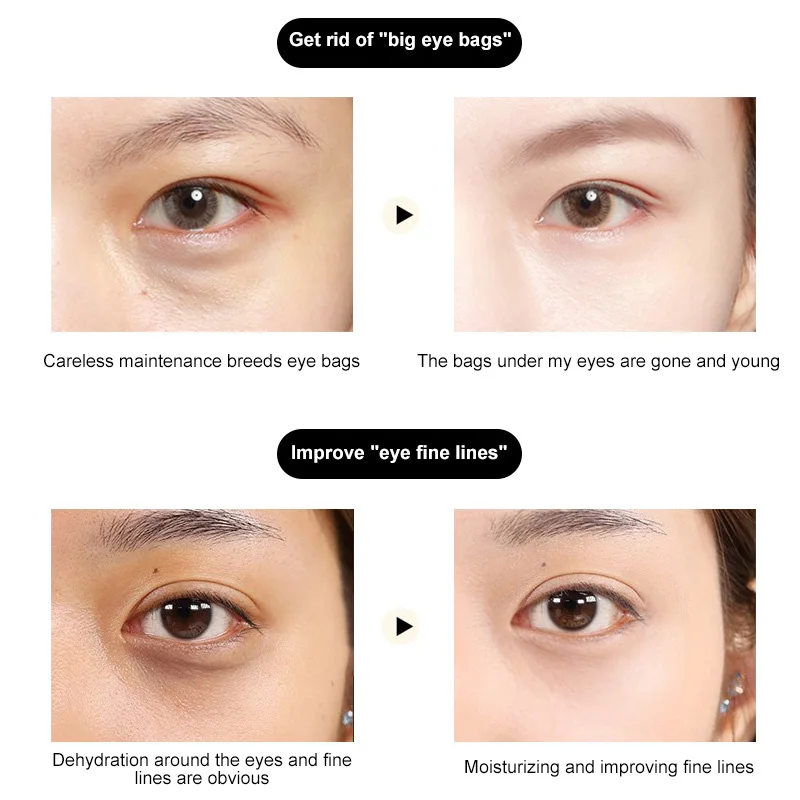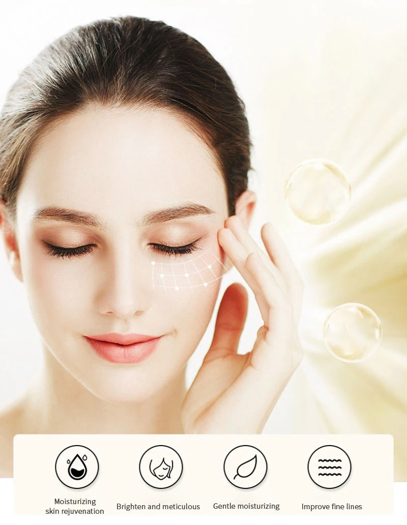 2. High-quality golden powder collagen eye cream can deeply moisturize the delicate skin of the eyes, increase skin elasticity, reduce eye bags, reduce dark circles, treat eye fatigue, reduce swelling, crow\\\\\\\'s feet and crow\\\\\\\'s feet, and lighten fine lines with a unique natural.