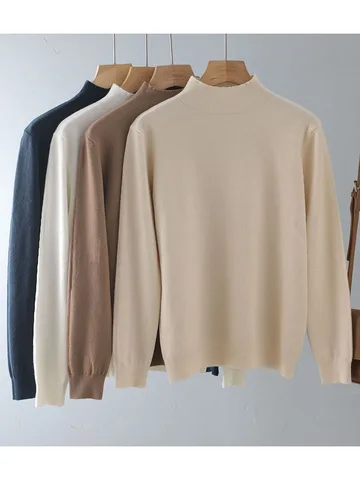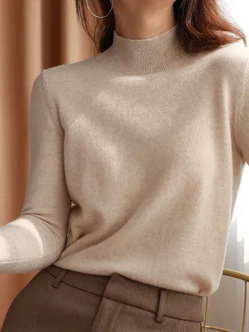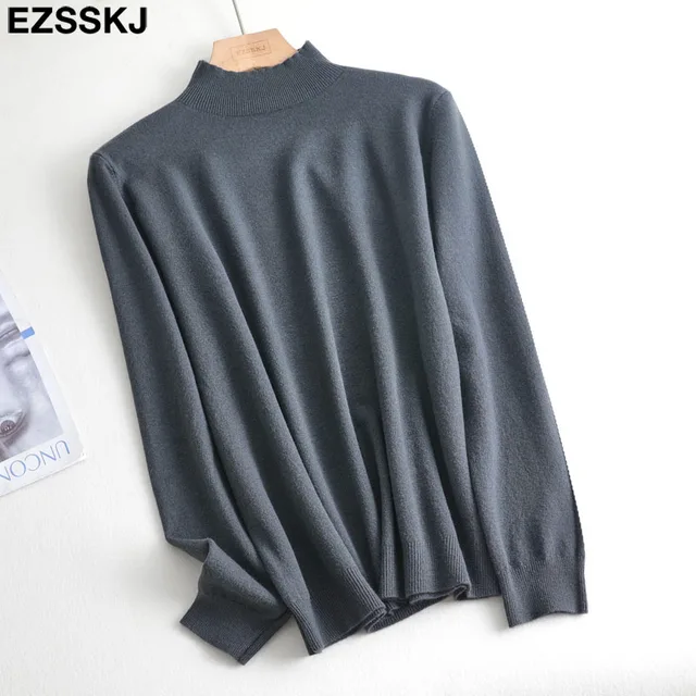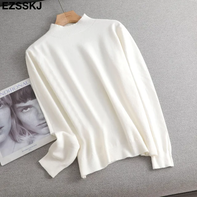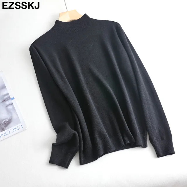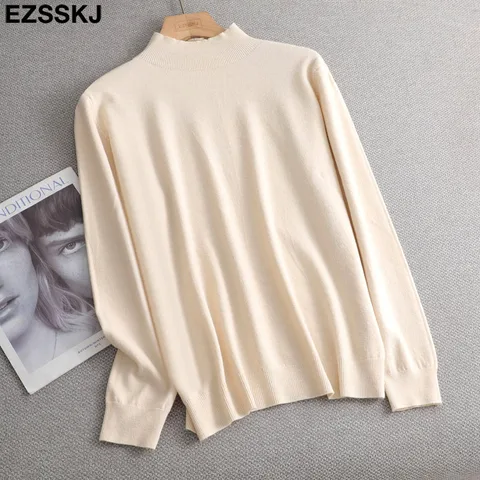 • Loose soft solid color turtleneck Sweater Pullover Women Casual Long Sleeve chic bottom Sweater Female Jumpers top