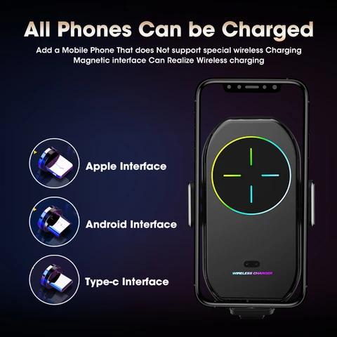 15W Qi Car Wireless Charger Phone Holder Air Vent Magnetic Charge Infrared Sensor Dashboard Windshield Stand for iPhone Samsung