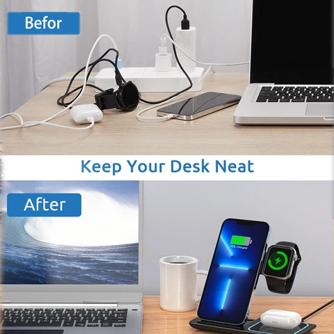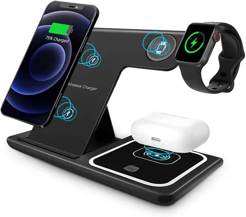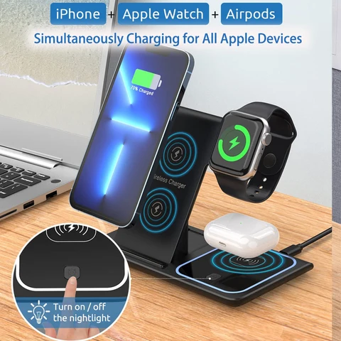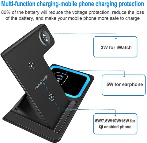3 in 1 Wireless Charger Stand for Samsung Galaxy Z Fold3/Z Flip3/S22/S21/S20/S10/S9/S8 Plus Note20 Watch 3 4 Classic /LTE/BT Active 2/1 Buds Pro Live Wireless Charging Station for iPhone Phone AirPods Pro/2