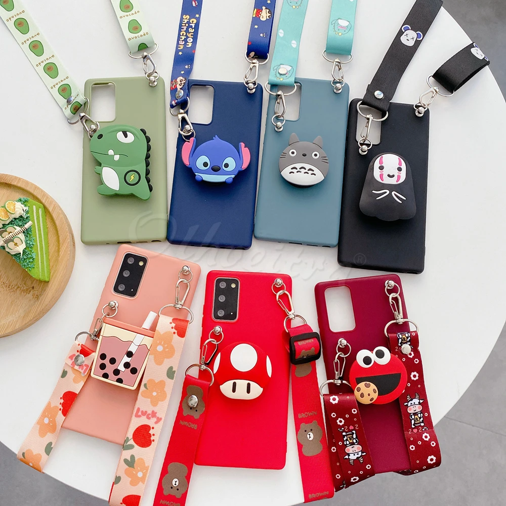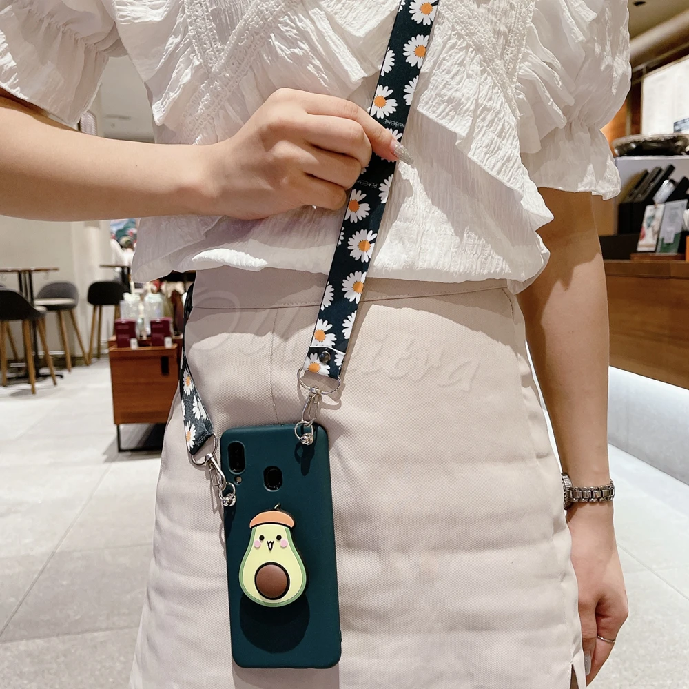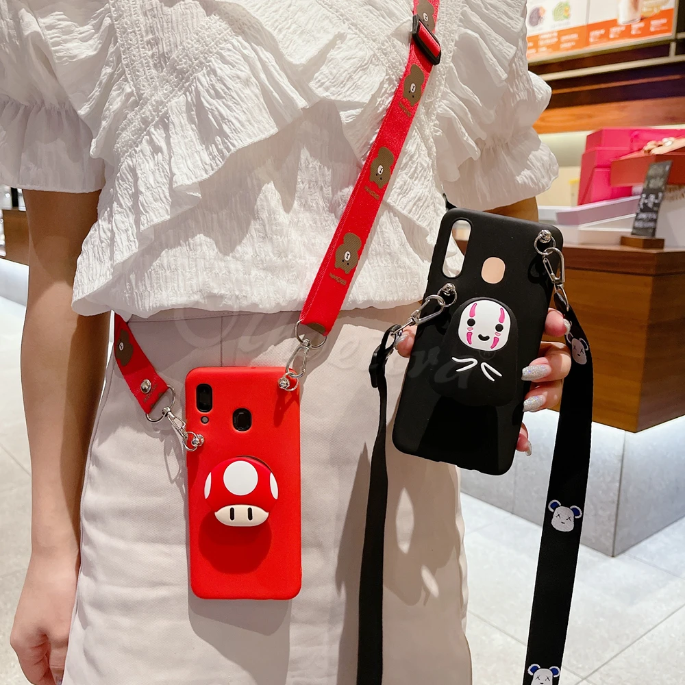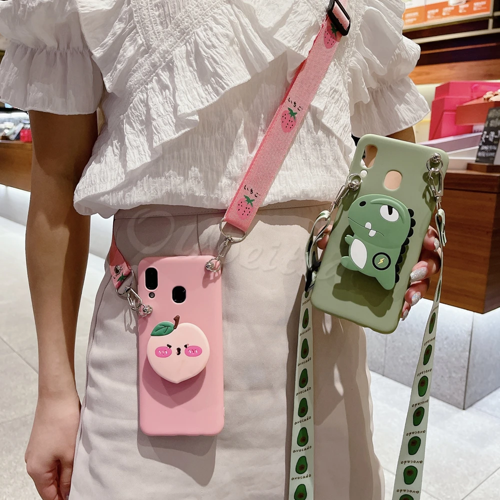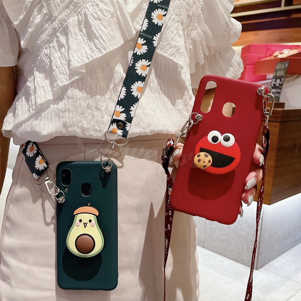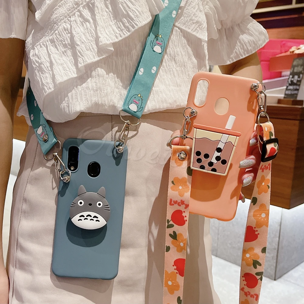 Holder Stand Cover For Samsung Galaxy J7 2015 J5 J3 Pro A5 2017 2016 S7 S6 Edge Case Cartoon Necklace Lanyard Strap Fundas