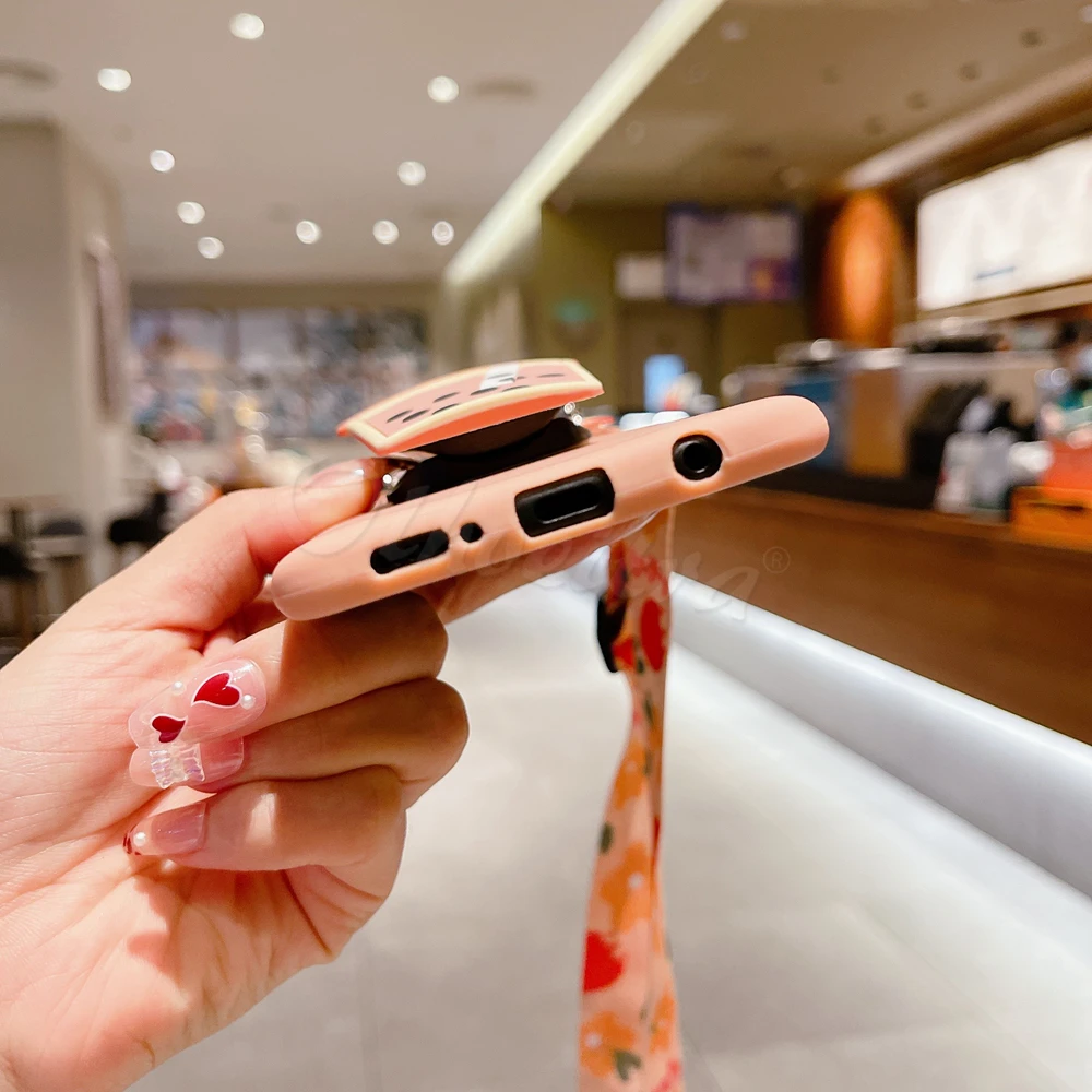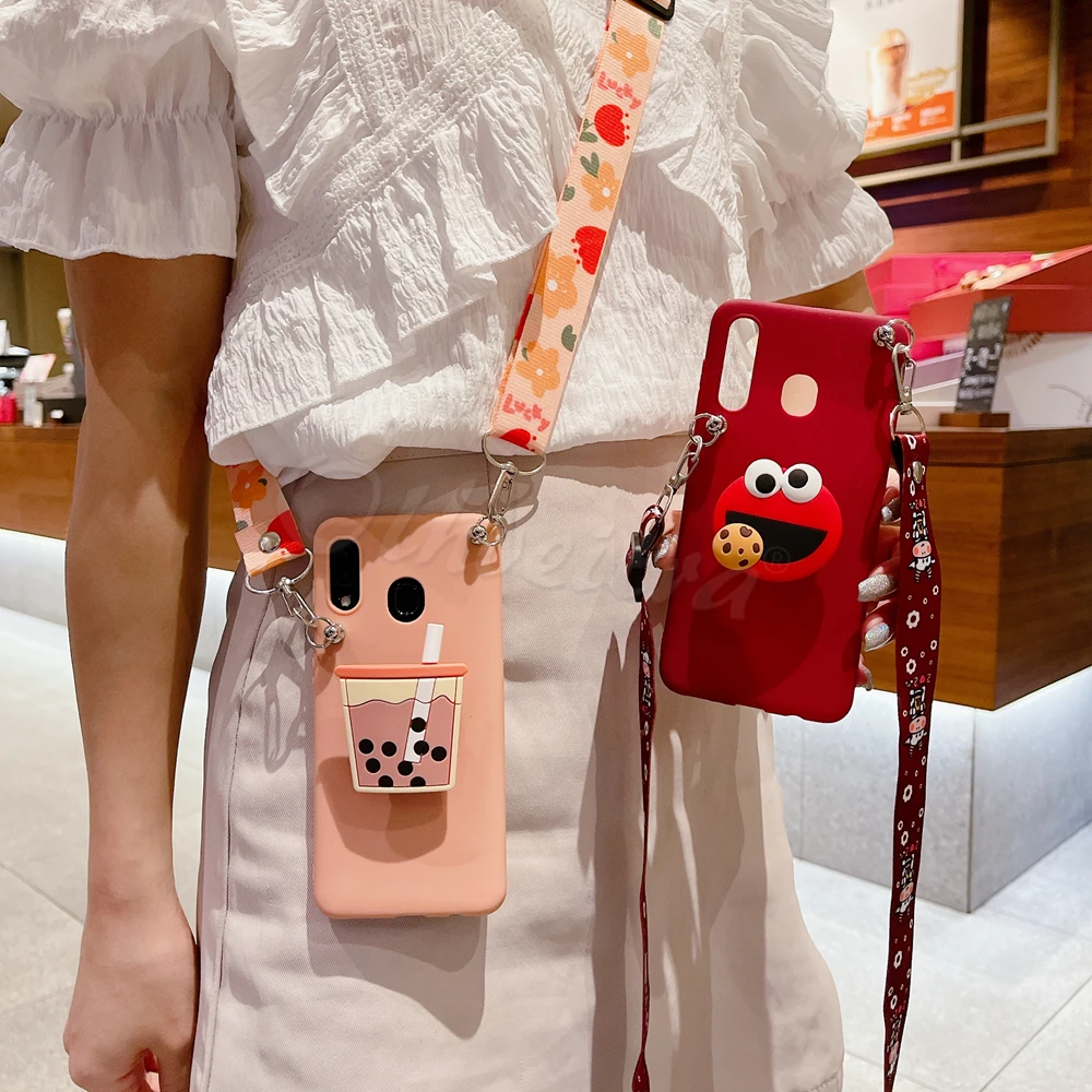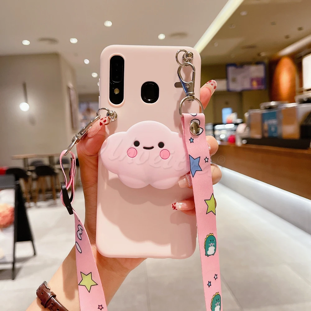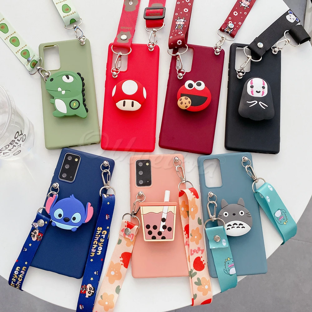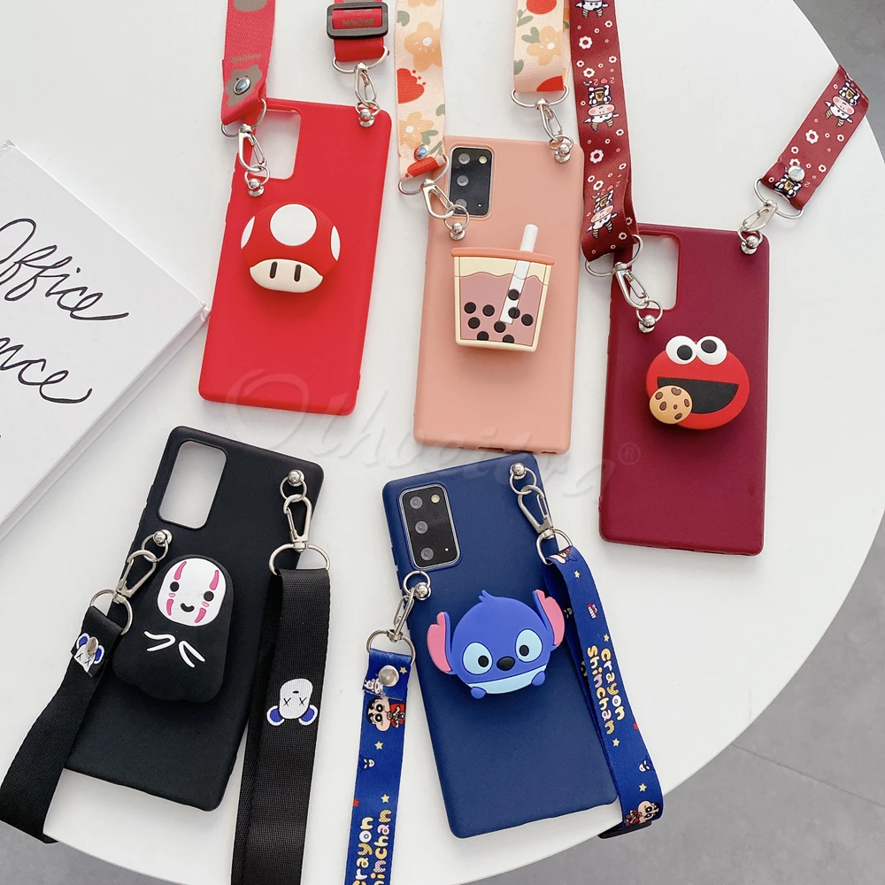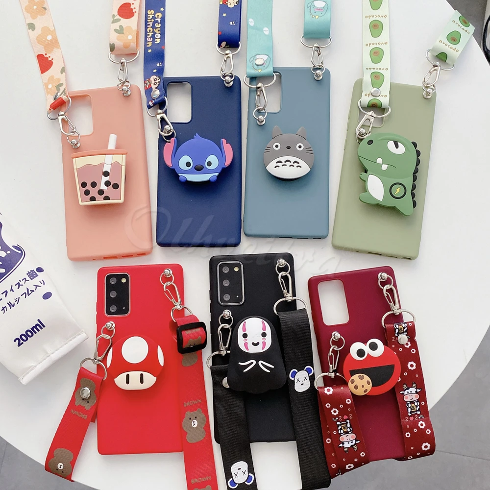 Holder Stand Cover For Samsung Galaxy J7 2015 J5 J3 Pro A5 2017 2016 S7 S6 Edge Case Cartoon Necklace Lanyard Strap Fundas