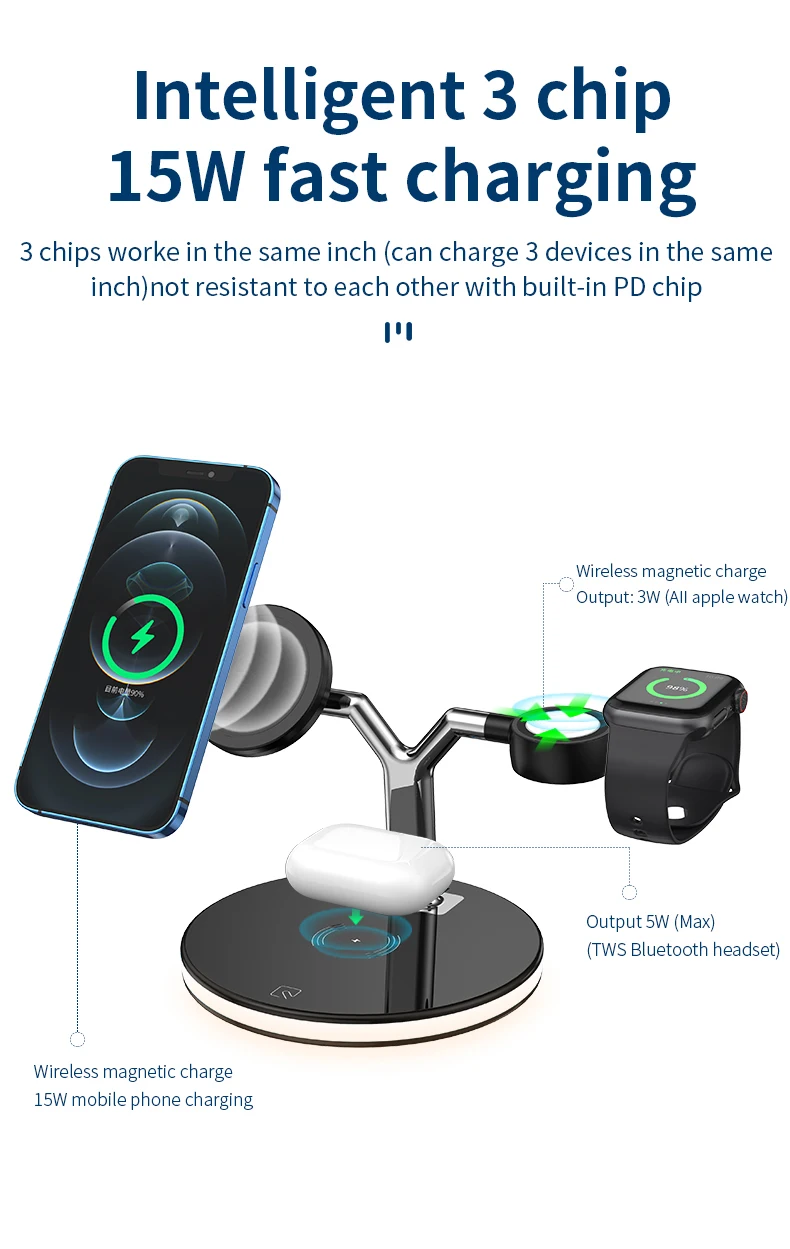 4.Output:5W,7.5W,10W,15W Watch:3W for iwatch series Headphone: for airpods