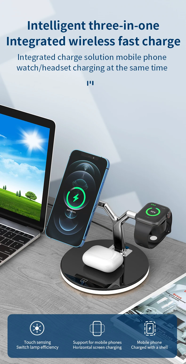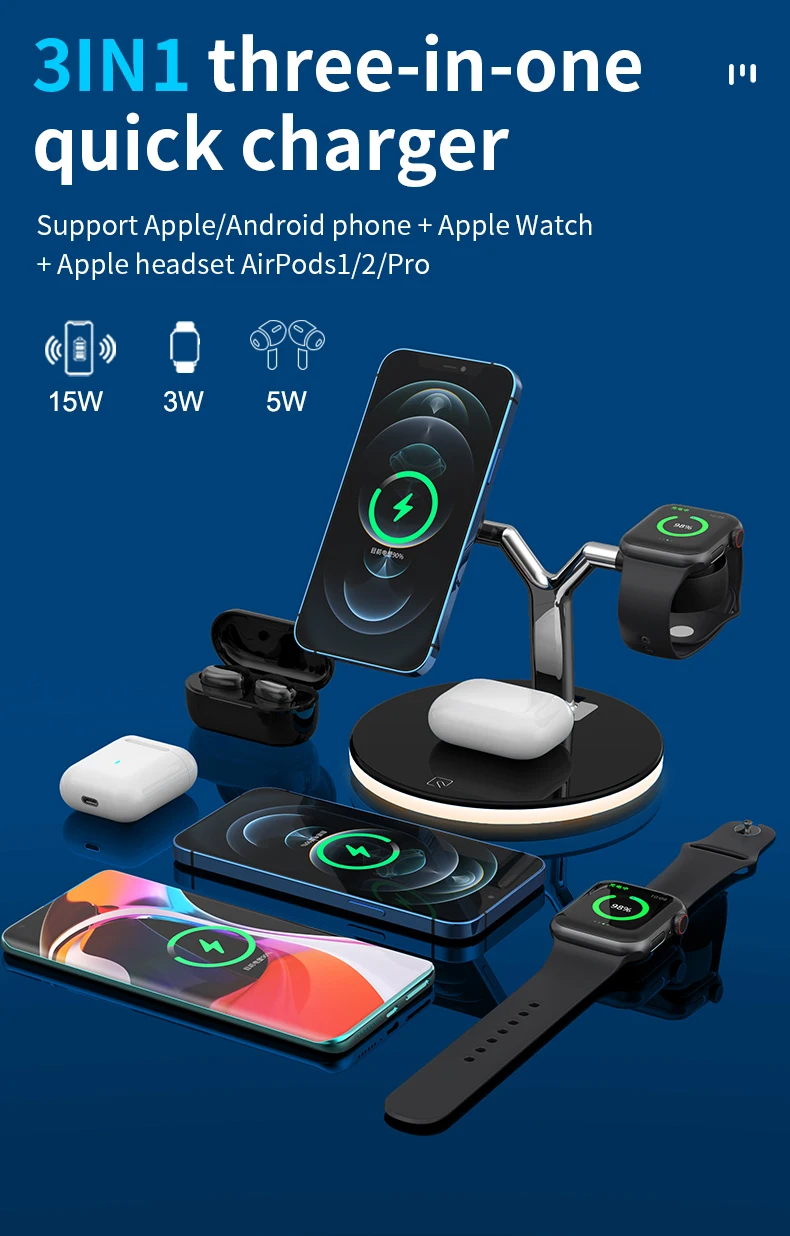 1.Product Name:3in1 Fast 15W Wireless Charger Stand