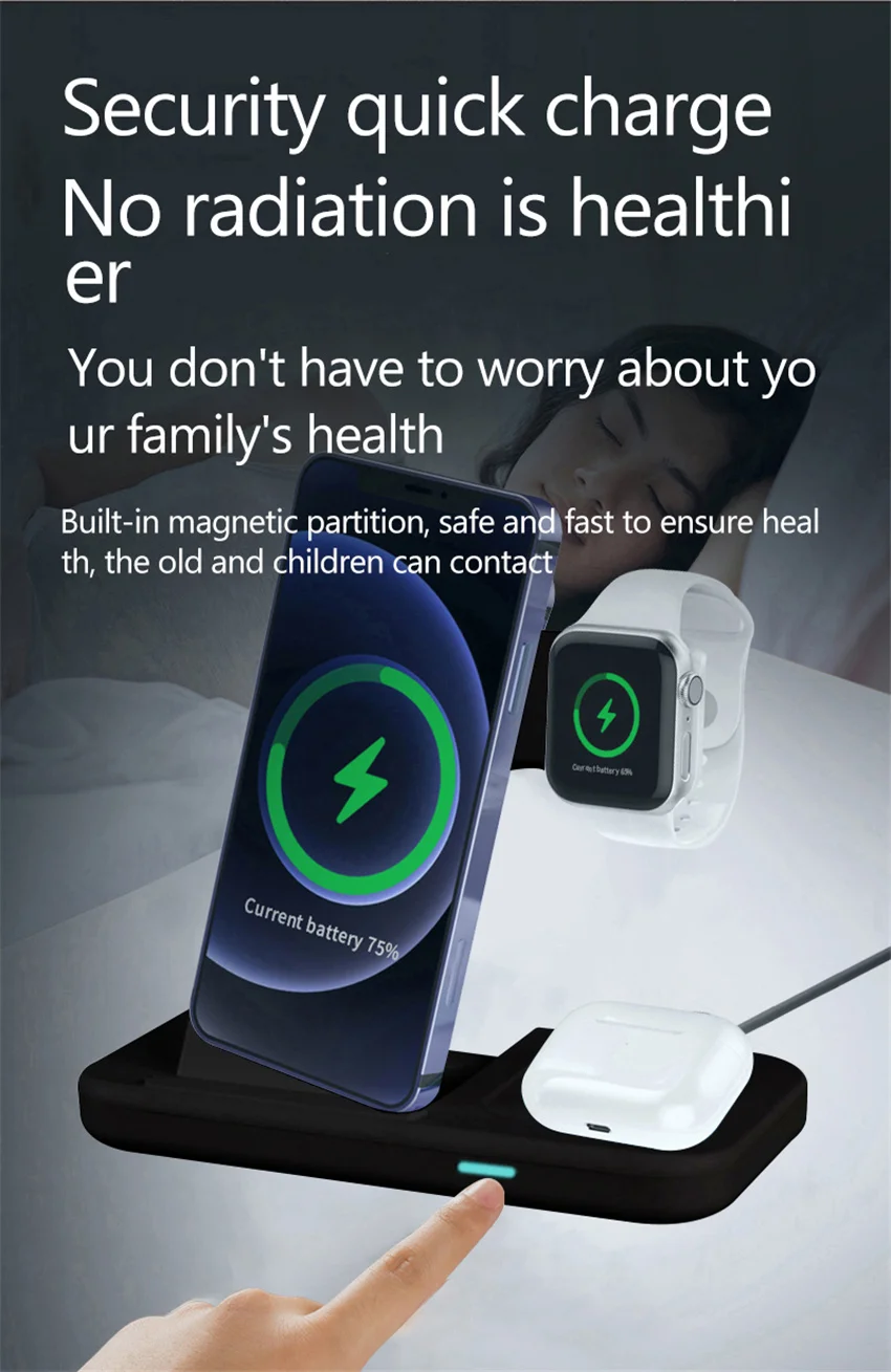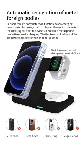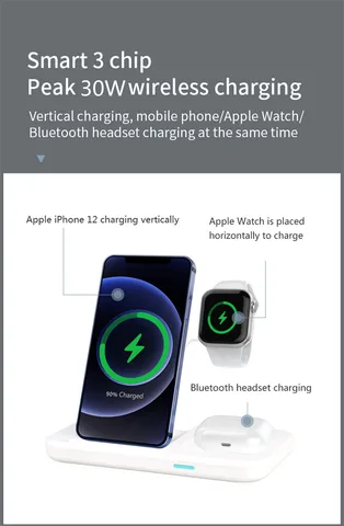 • Qi Wireless Charger Stand For iPhone 13 12 Samsung 3 In 1 Qi Fast Charging Dock Station for Airpods Pro Apple Watch IWatch 7