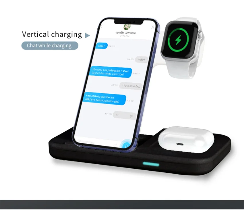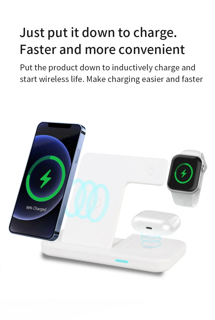 Qi Wireless Charger Stand For iPhone 13 12 Samsung 3 In 1 Qi Fast Charging Dock Station for Airpods Pro Apple Watch IWatch 7