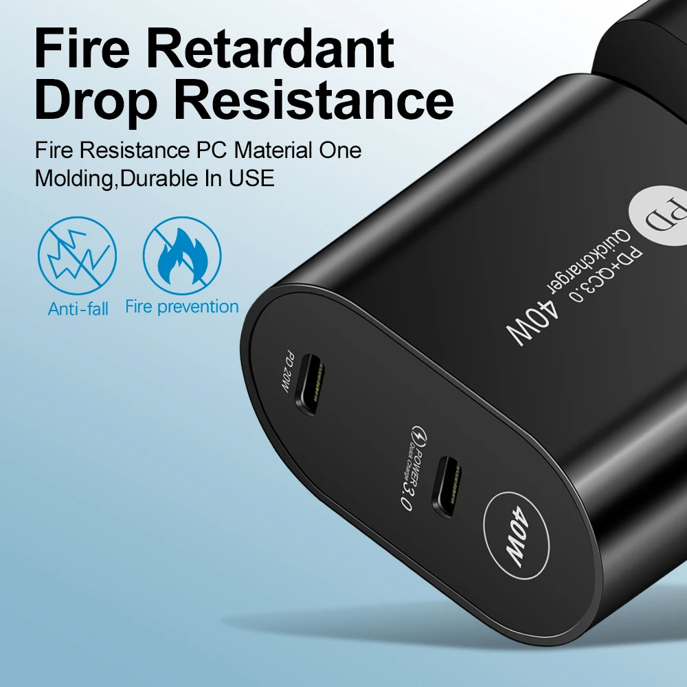 PD 40W USB C Charger QC 3.0 EU US UK Plug Fast Charger Type C Phone Charger For iPhone11 iPhone 12 Pro Max iPad Xiaomi