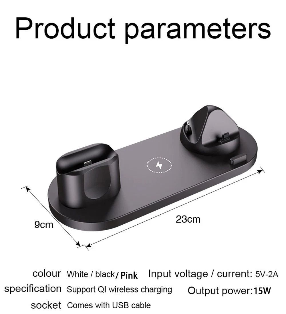 Output:15W(Wireless Charger 15W/ Earbuds 5W / Watch 5W / USB 5W)