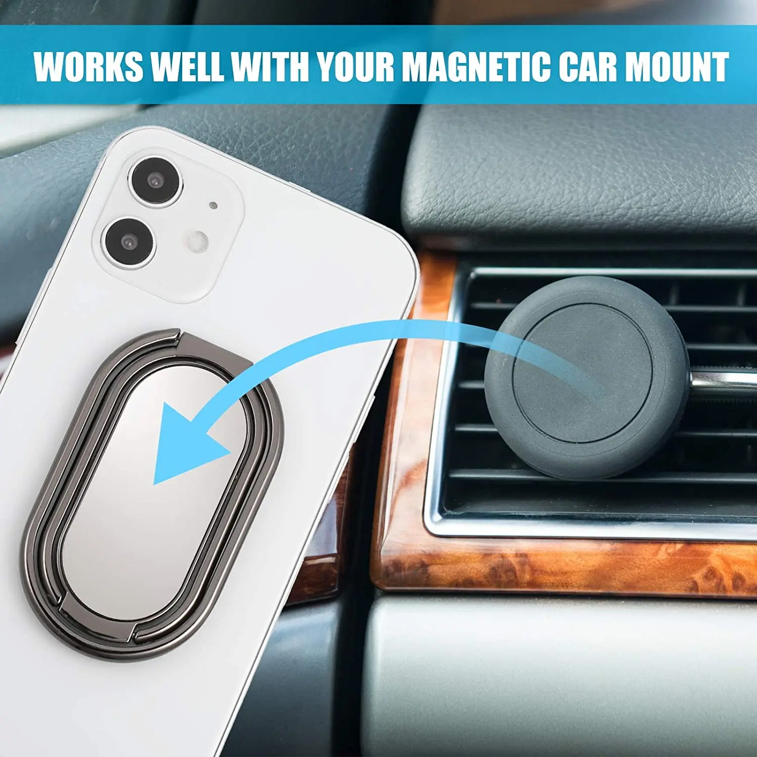 Phone Ring Holder Finger Kickstand 360 Degree Rotation Metal Cell Phone Ring Grip Foldable Cellphone Stand for Magnetic Car Mount Compatible with Most Smartphones and Tablets